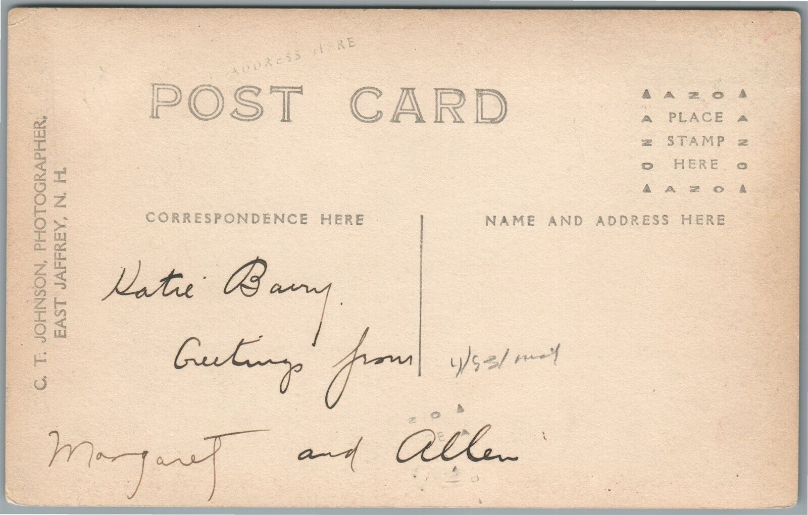 EAST JAFFREY NH BIRDS EYE VIEW ANTIQUE REAL PHOTO POSTCARD RPPC