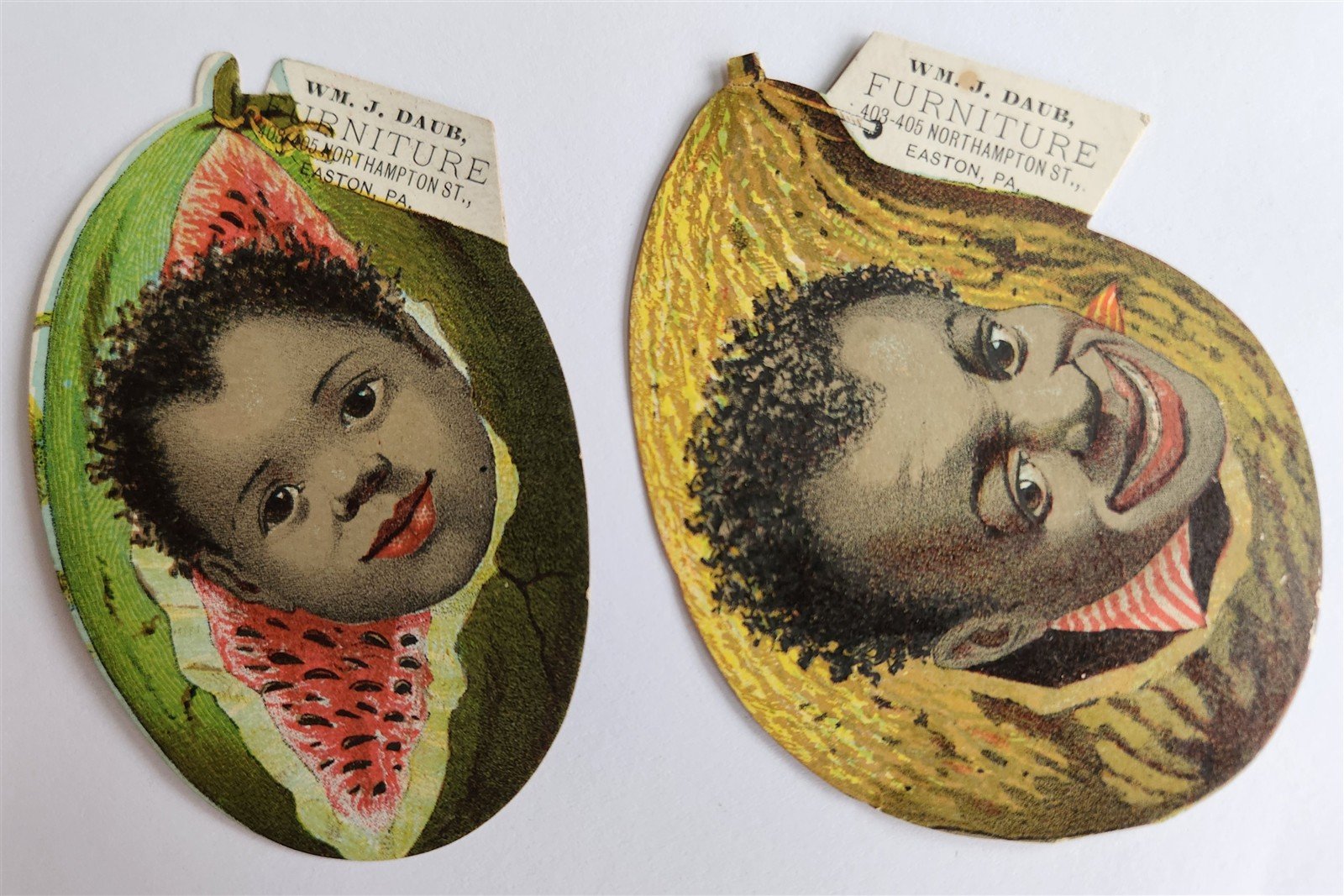EASTON PA 2 BLACK AMERICANA ANTIQUE VICTORIAN TRADE CARDS - DAUB FURNITURE