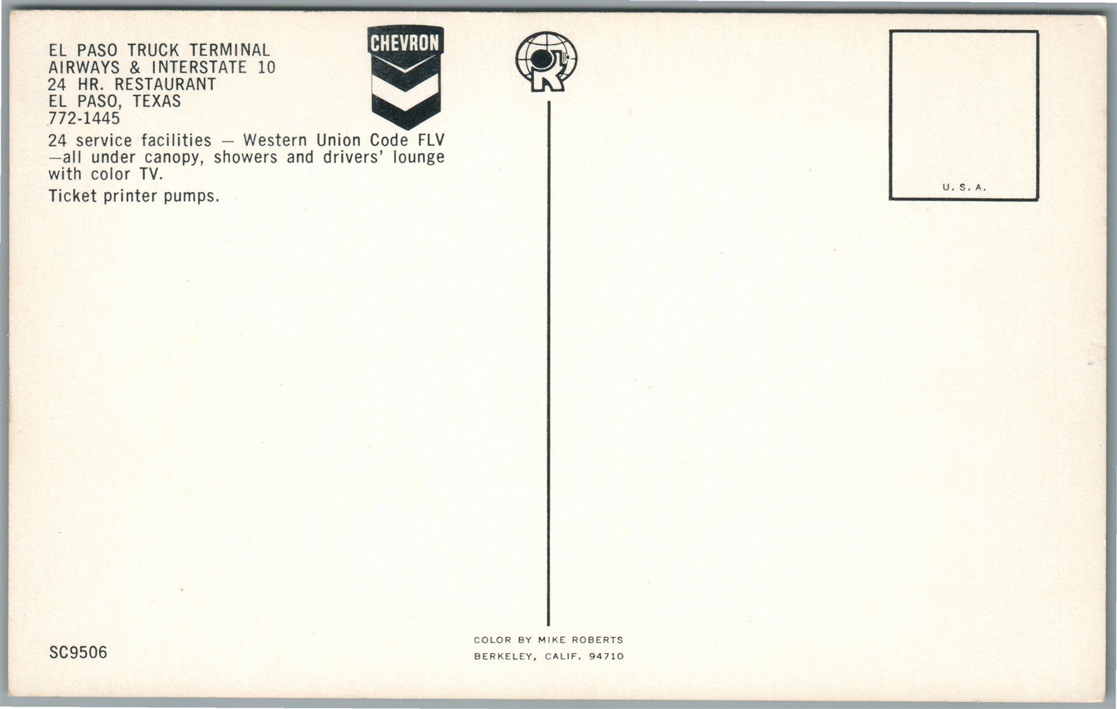 EL PASO TX TRUCK TERMINAL HEVRON STANDARD OIL SIGN VINTAGE POSTCARD