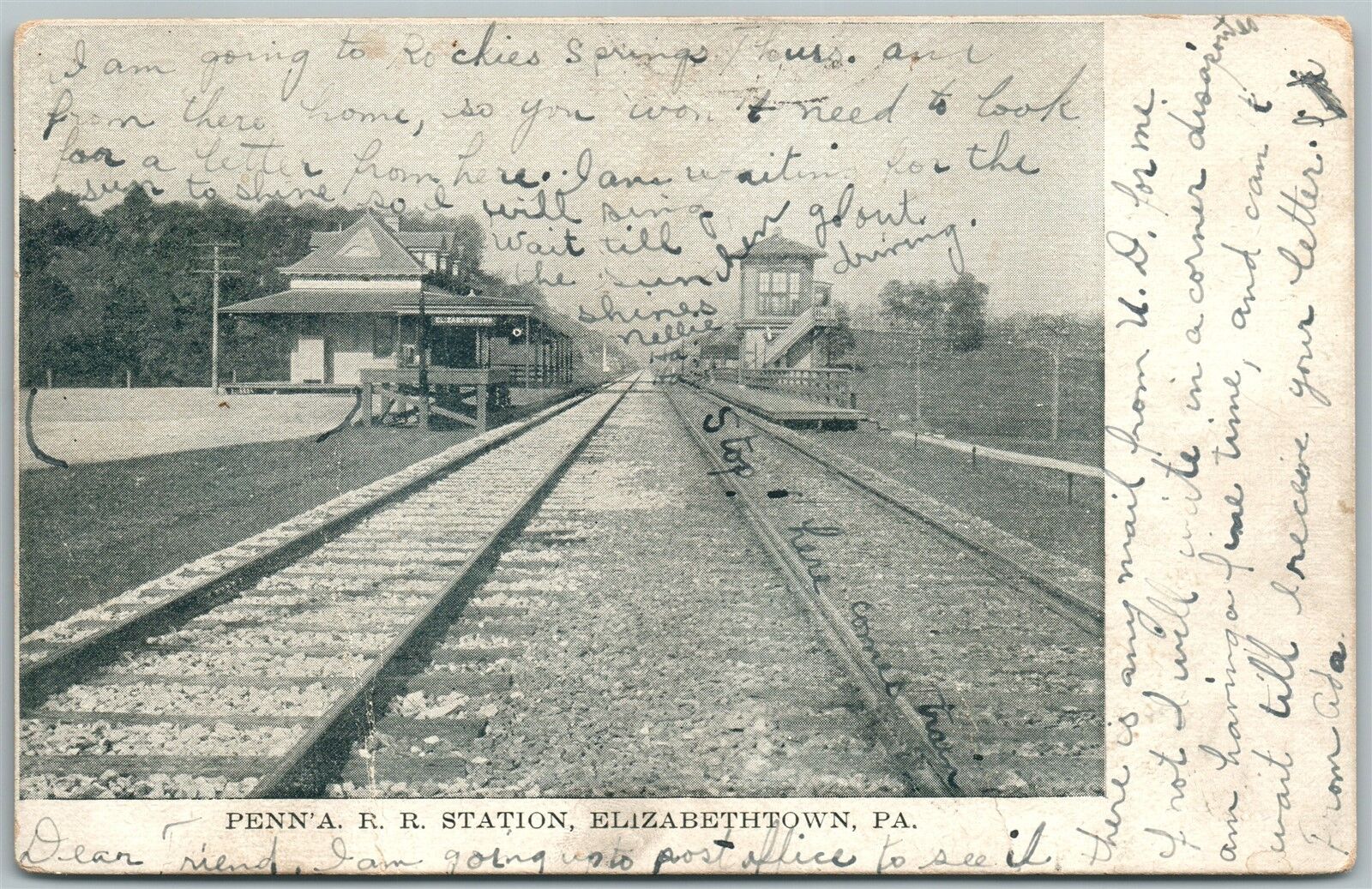 ELIZABETHTOWN PA RAILROAD STATION 1906 ANTIQUE POSTCARD train railway depot