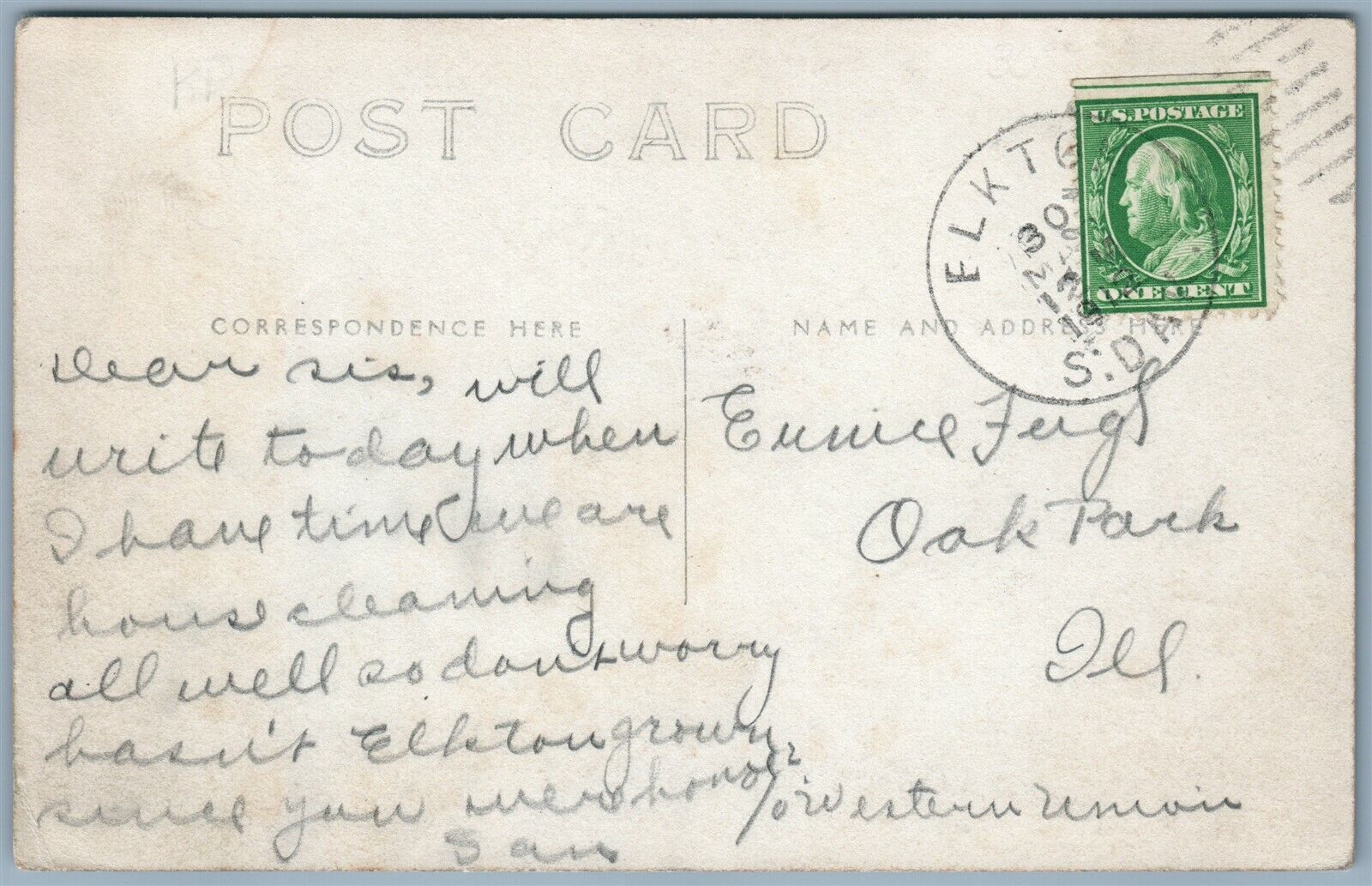 ELKTON S. DAKOTA STREET SCENE w/ TRAIN 1912 ANTIQUE PHOTOMONTAGE REAL PHOTO RPPC