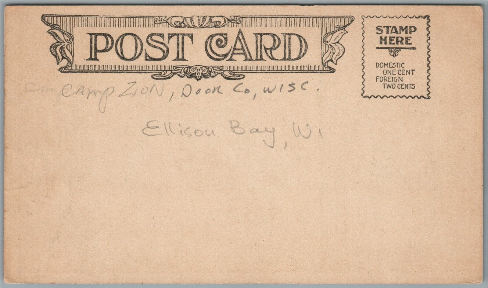 ELLISON BAY WI CAMP ZION SWINGING BRIDGE BOYS CABINS ANTIQUE POSTCARD