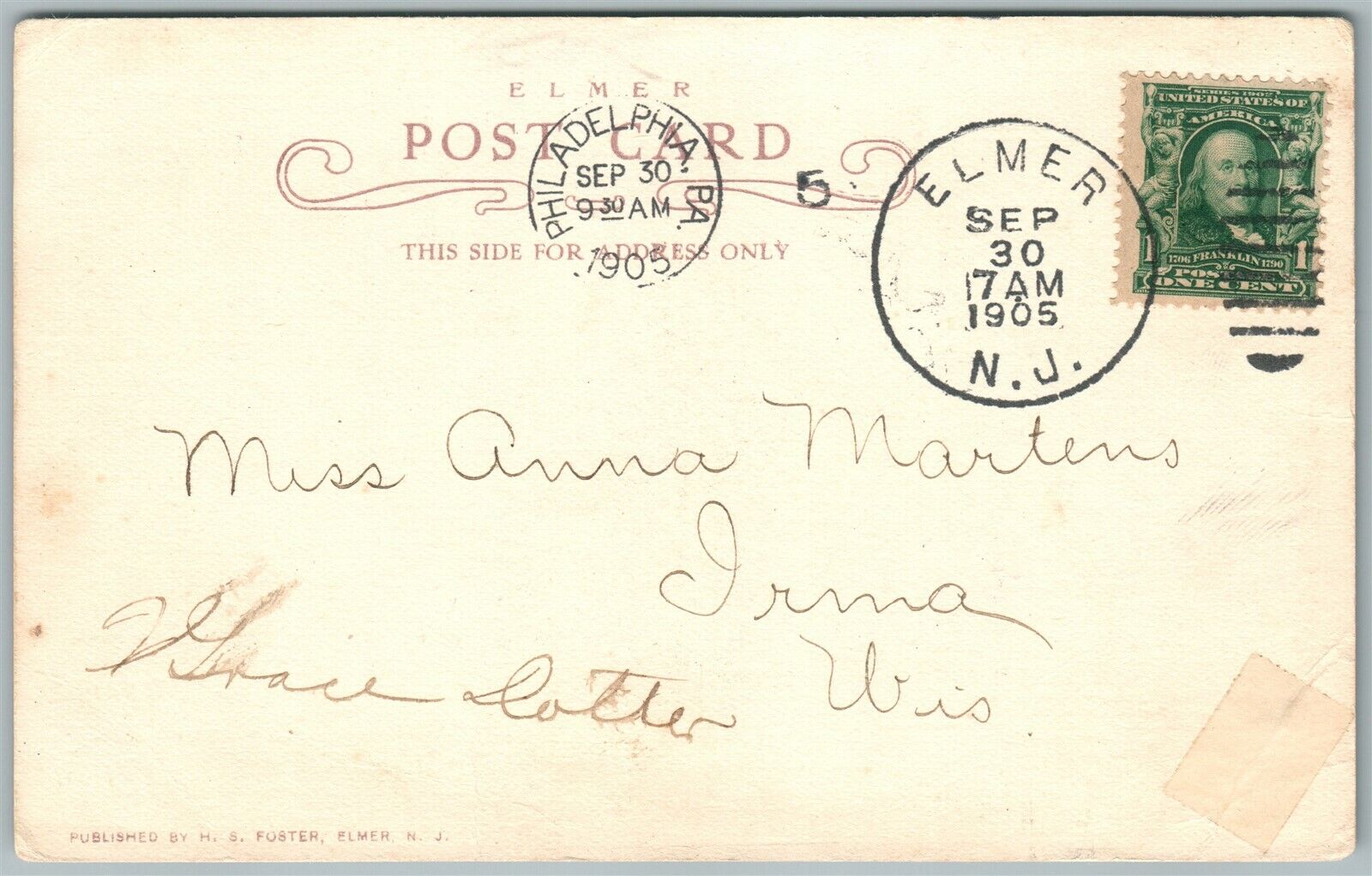 ELMER NJ PRESBYTERIAN CHURCH 1905 ANTIQUE POSTCARD w/ CORK CANCEL