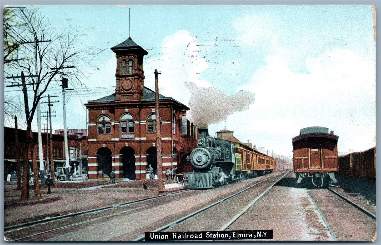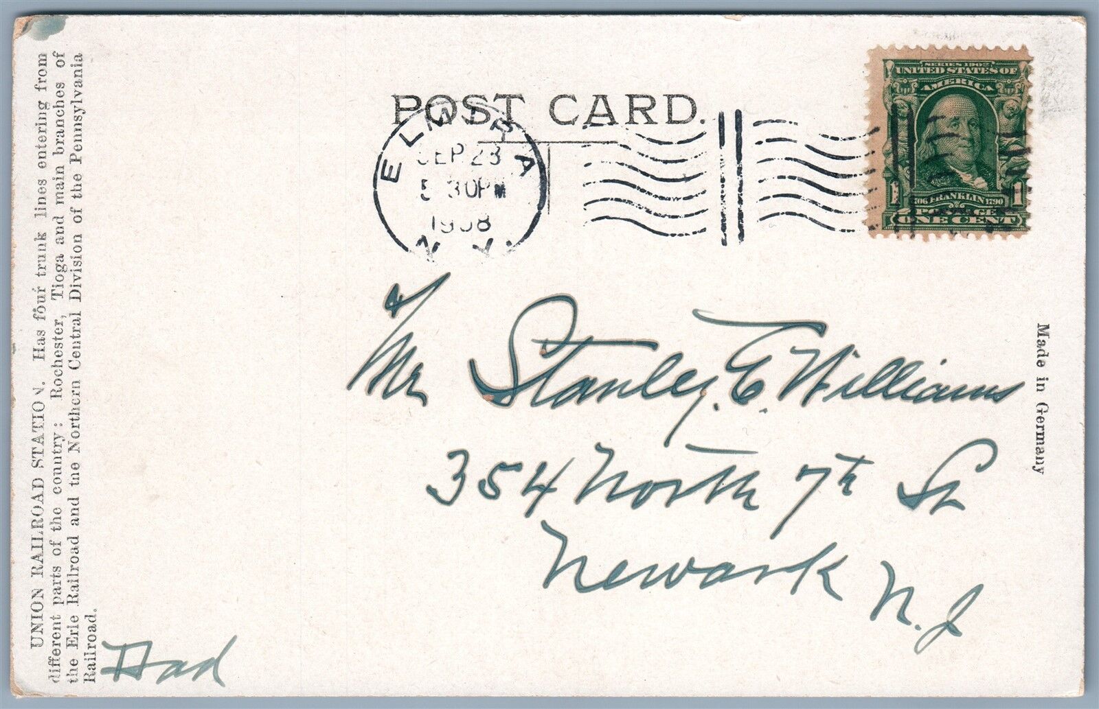 ELMIRA NY UNION RAILROAD STATION 1908 ANTIQUE POSTCARD railway depot
