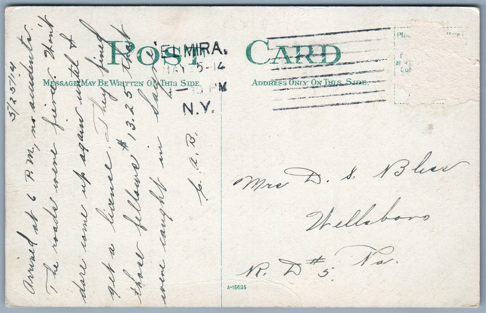 ELMIRA NY WEST WATER STREET 1914 ANTIQUE POSTCARD