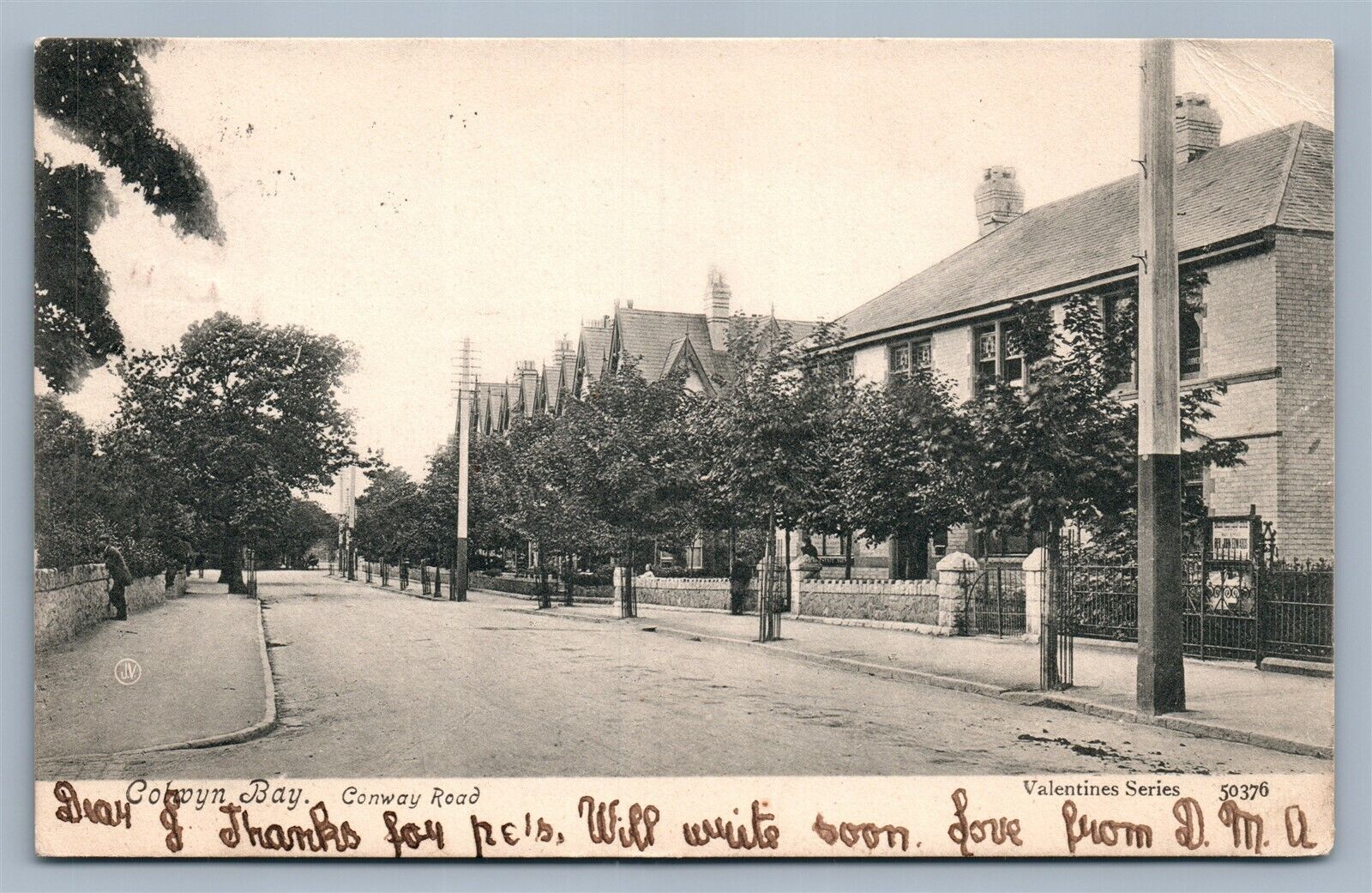 ENGLAND WALES COLWYN BAY CONWAY ROAD ANTIQUE POSTCARD w/ STAMP