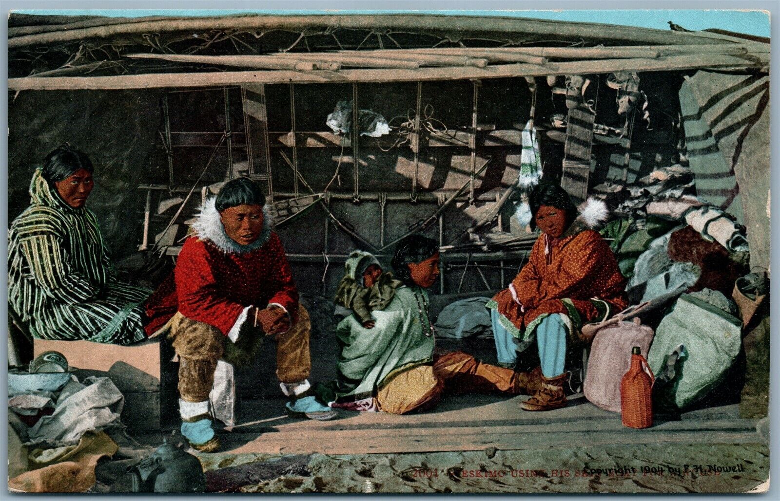 ESKIMO USING SKIN BOAT FOR A HOUSE ANTIQUE POSTCARD