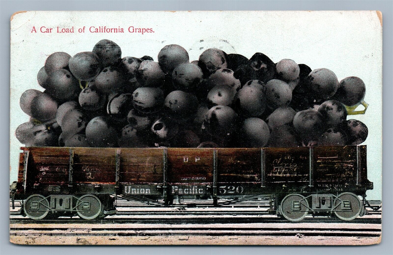 EXAGGERATED CAR LOAD OF CALIFORNIA GRAPES 1909 ANTIQUE POSTCARD