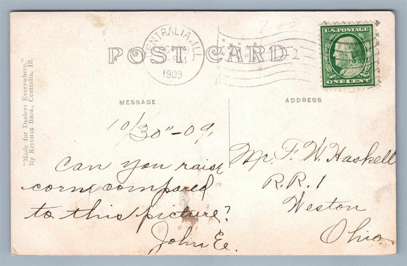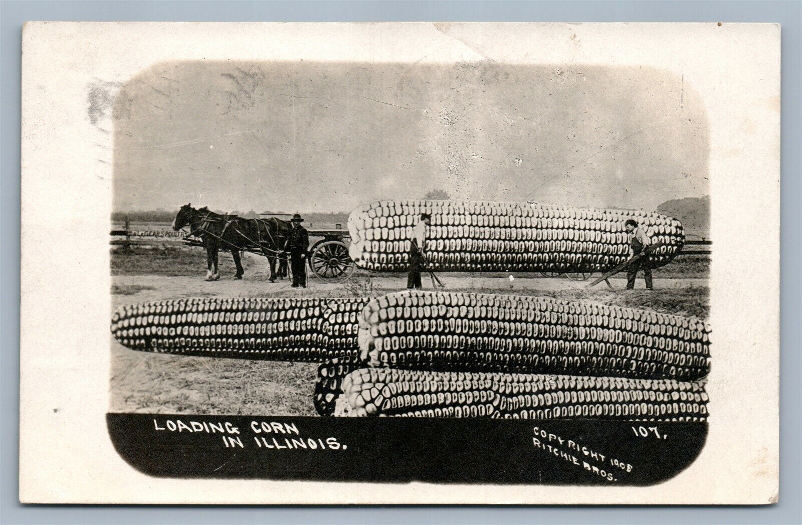 EXAGGERATED CORN LOADING ILLINOIS 1909 ANTIQUE REAL PHOTO POSTCARD RPPC