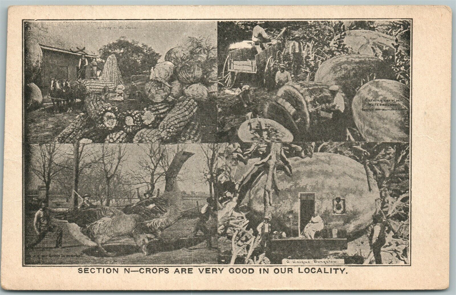 EXAGGERATED FARMING ANTIQUE 1913 POSTCARD CROPS ARE VERY GOOD in OUR LOCALITY