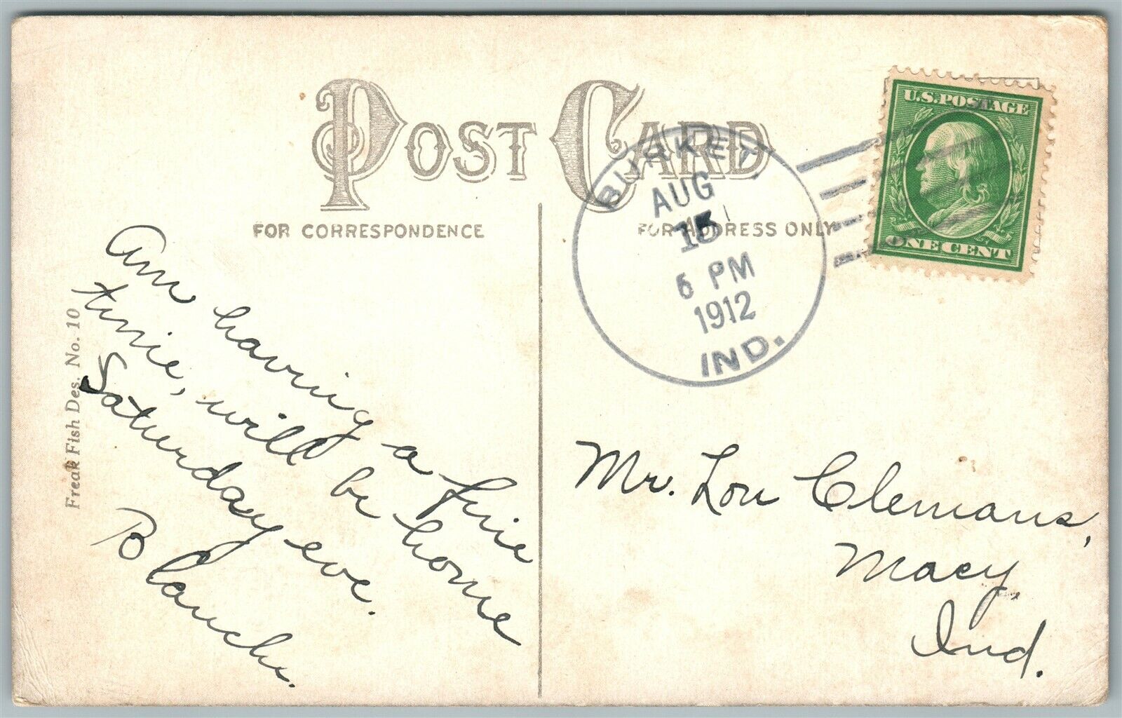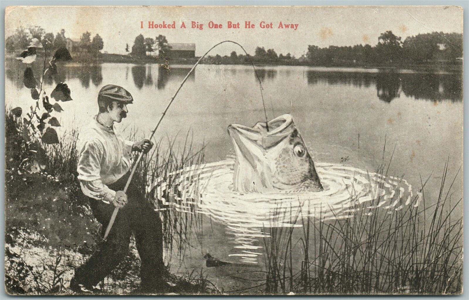 EXAGGERATED FISHING 1912 ANTIQUE POSTCARD I HOOKED A BIG ONE