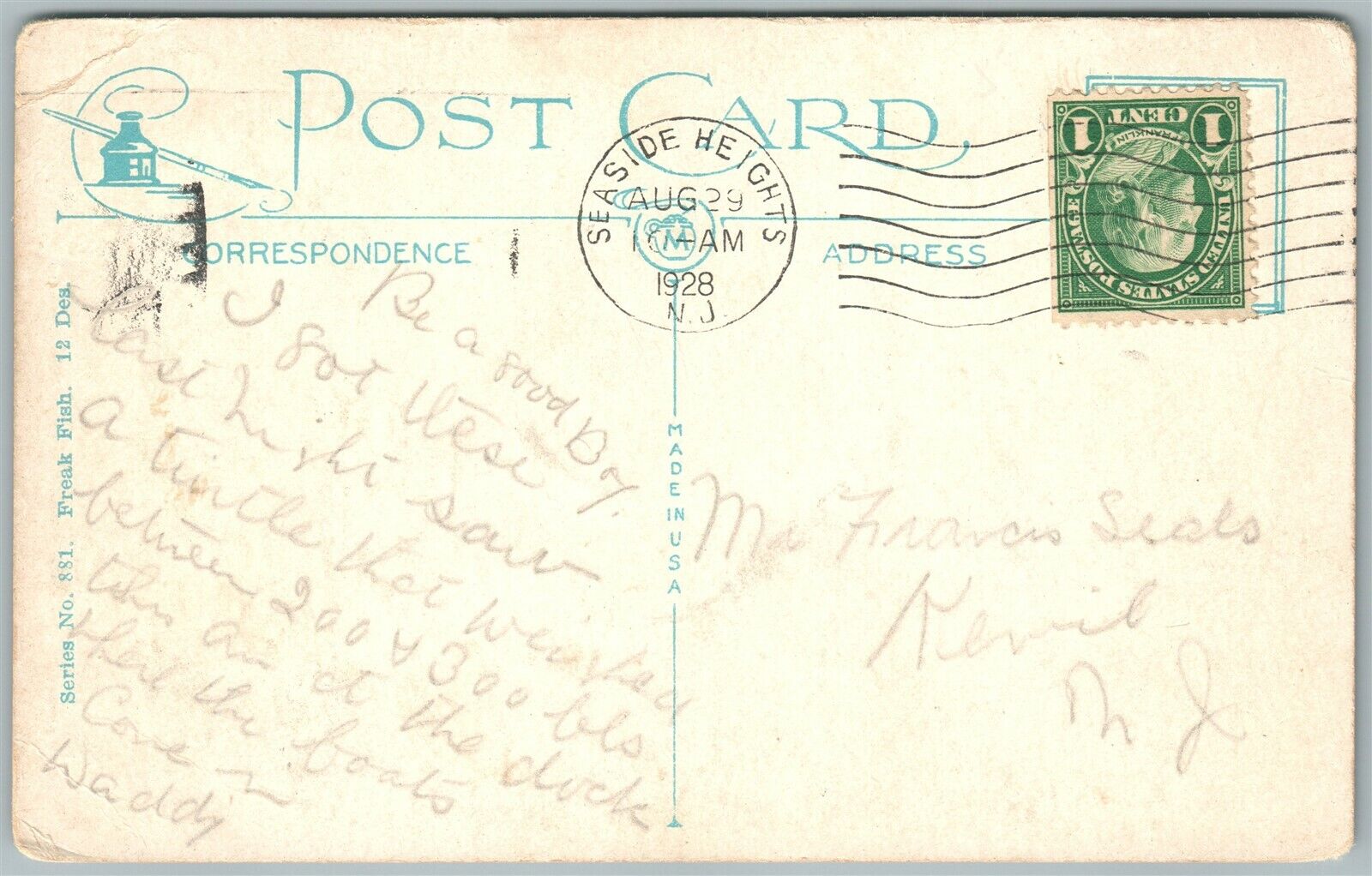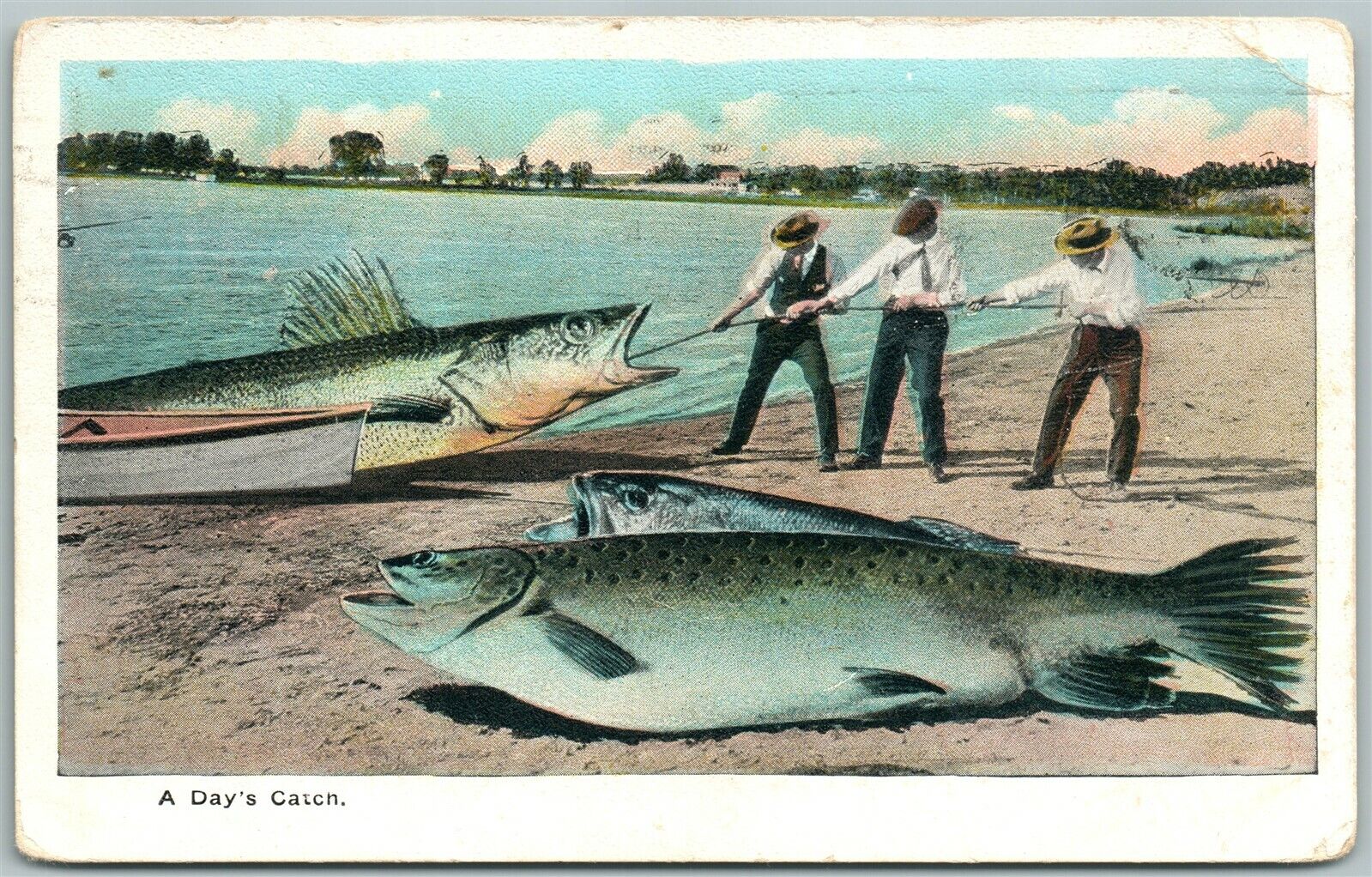 EXAGGERATED FISHING 1928 VINTAGE POSTCARD DAY'S CATCH
