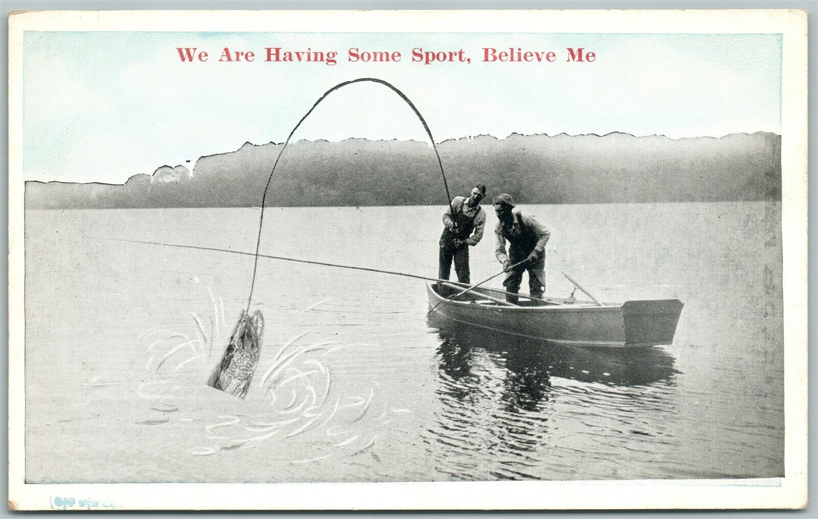 EXAGGERATED FISHING ANTIQUE POSTCARD FREAK FISH