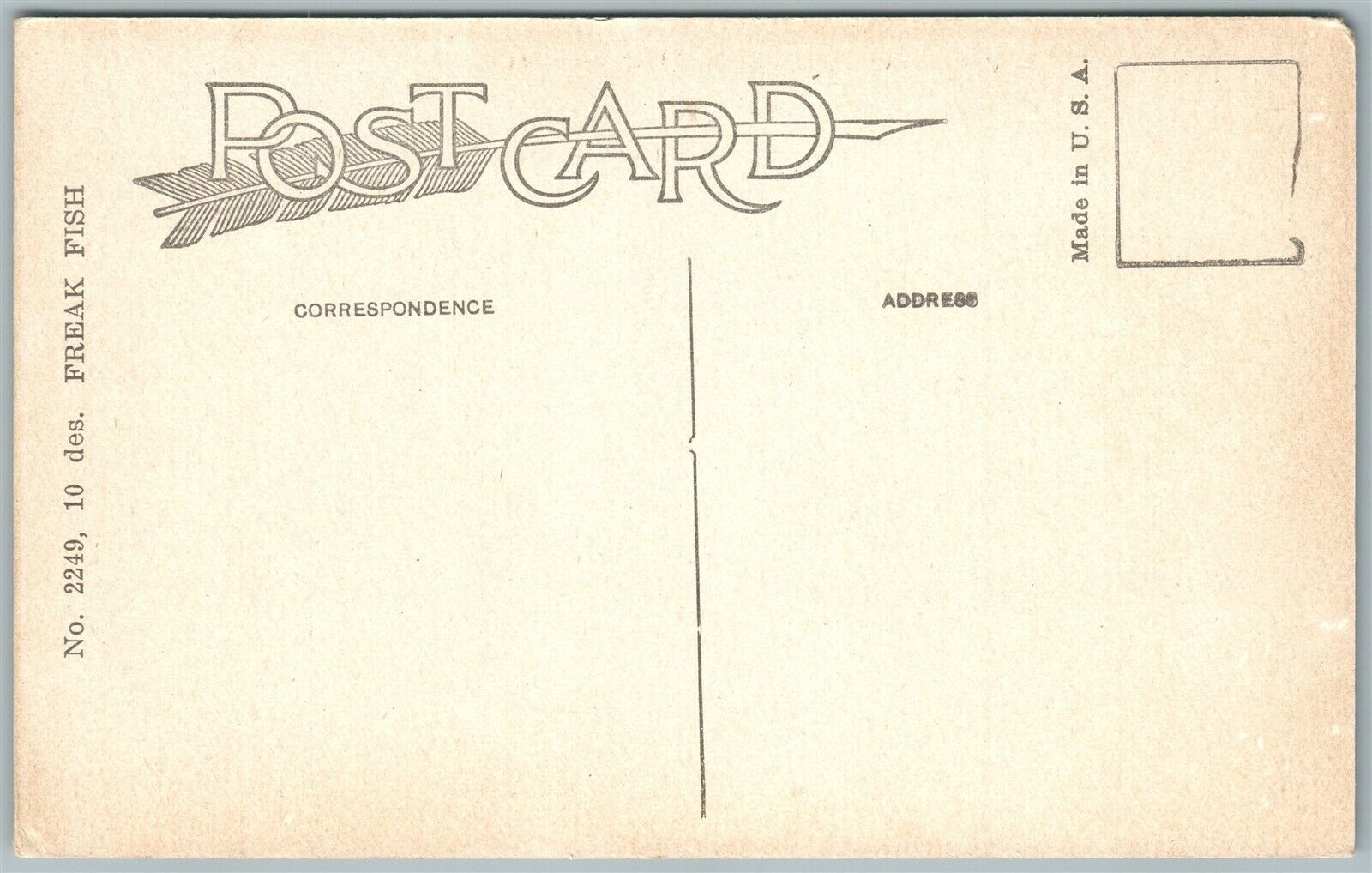 EXAGGERATED FISHING ANTIQUE POSTCARD THIS IS WHERE WE SPEND A VACATION