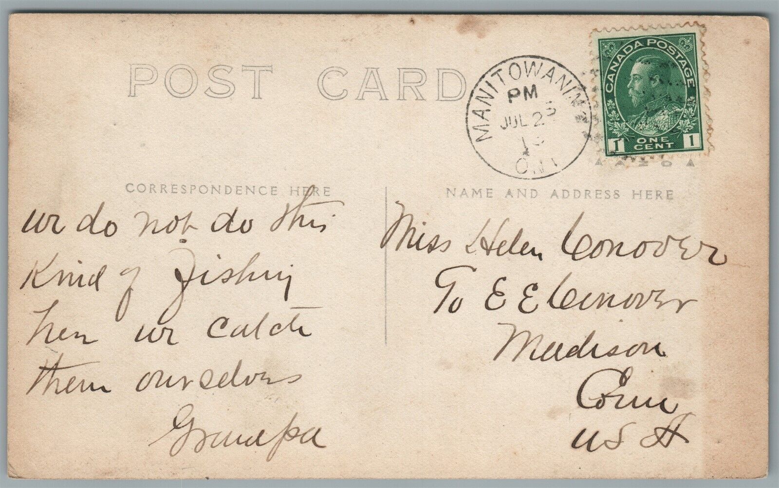 EXAGGERATED FISHING CANADIAN ANTIQUE REAL PHOTO POSTCARD RPPC
