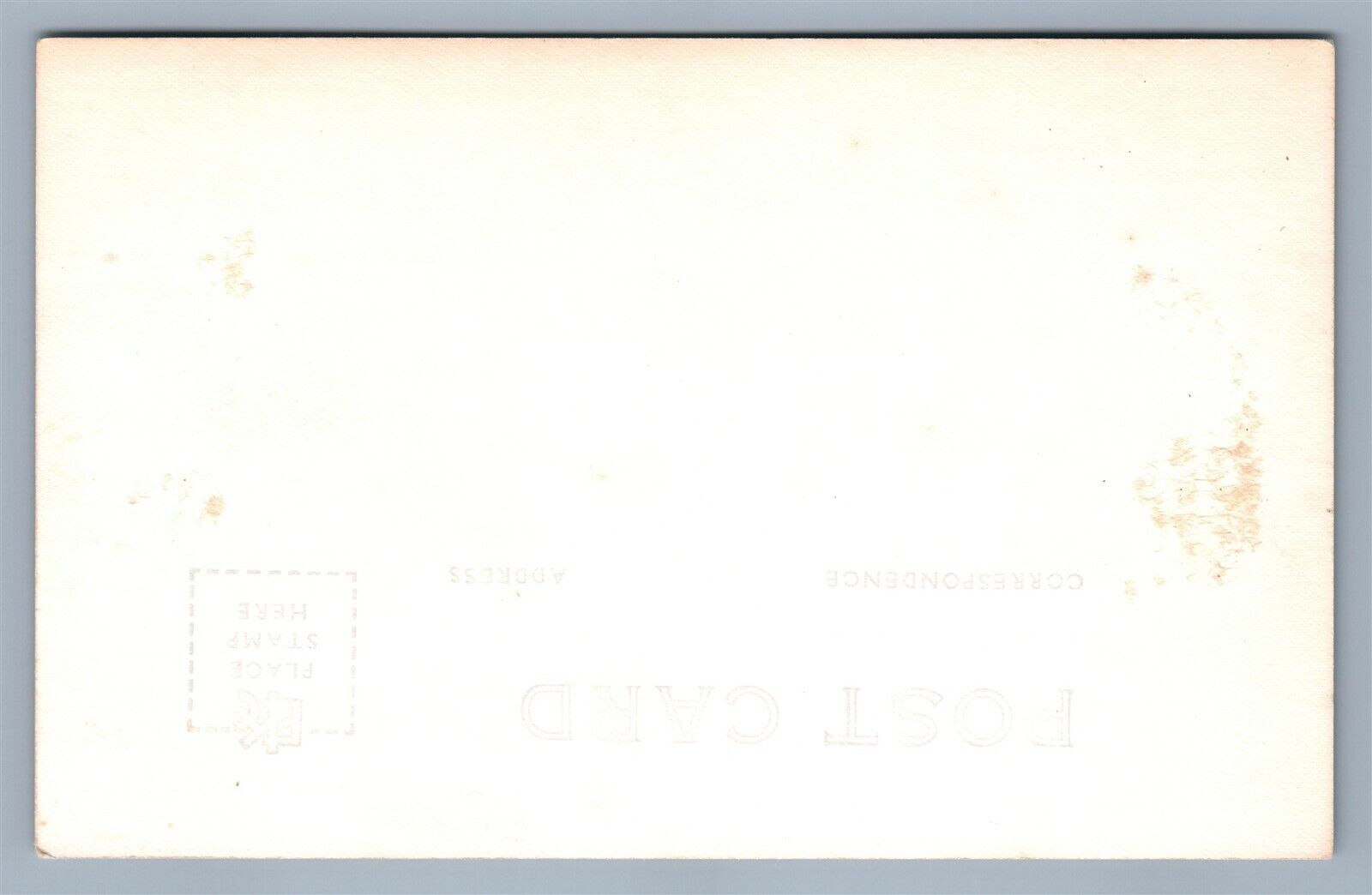 EXAGGERATED GRASSHOPER HOLDS BUS VINTAGE REAL PHOTO POSTCARD RPPC COLBY KS