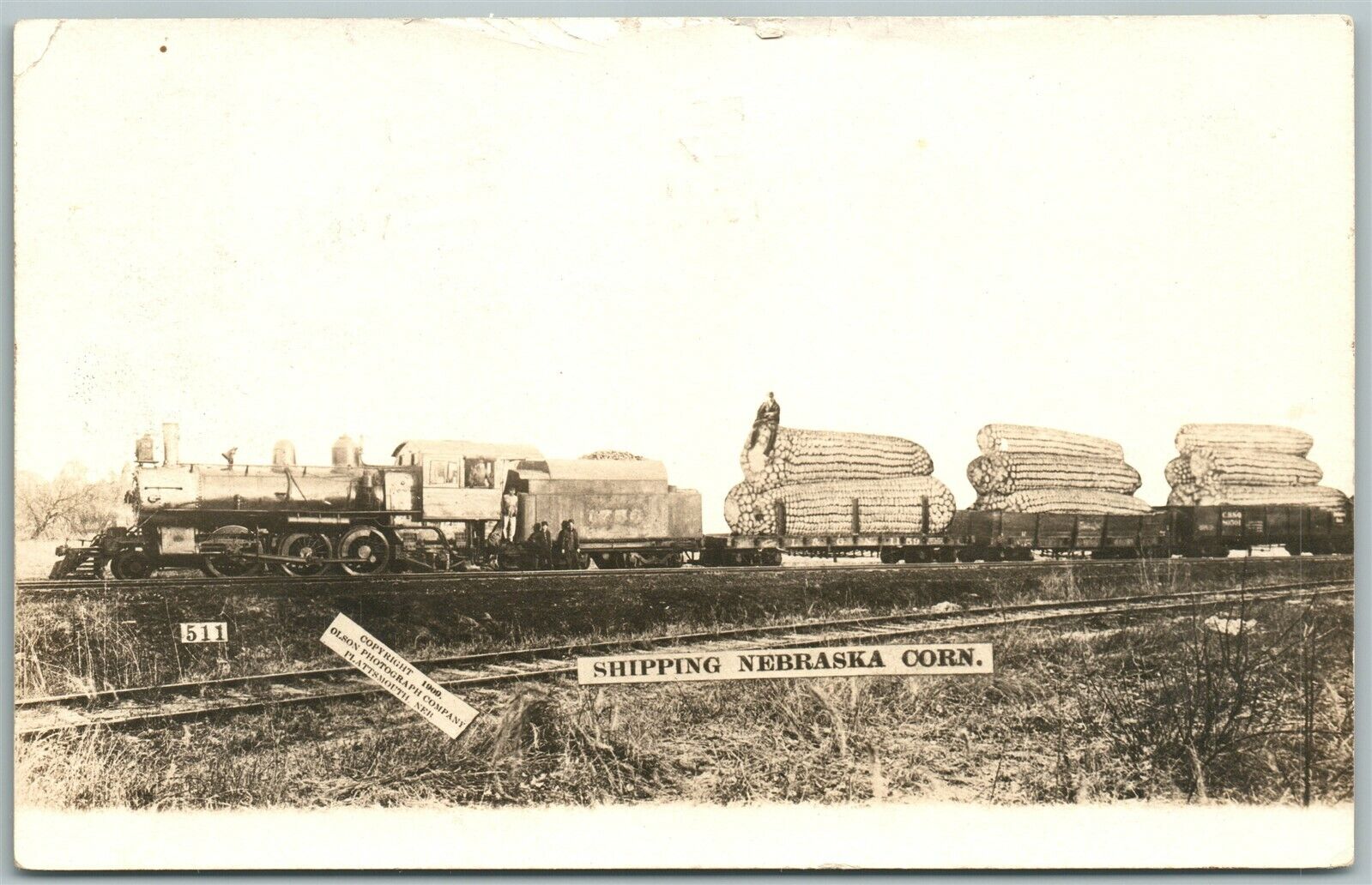 EXAGGERATED NEBRASKA CORN 1910 ANTIQUE REAL PHOTO POSTCARD RPPC railroad railway