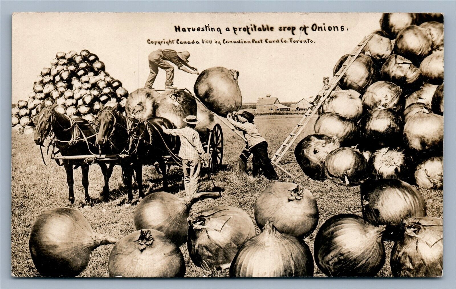 EXAGGERATED ONIONS HARVEST ANTIQUE REAL PHOTO POSTCARD RPPC collage MONTAGE