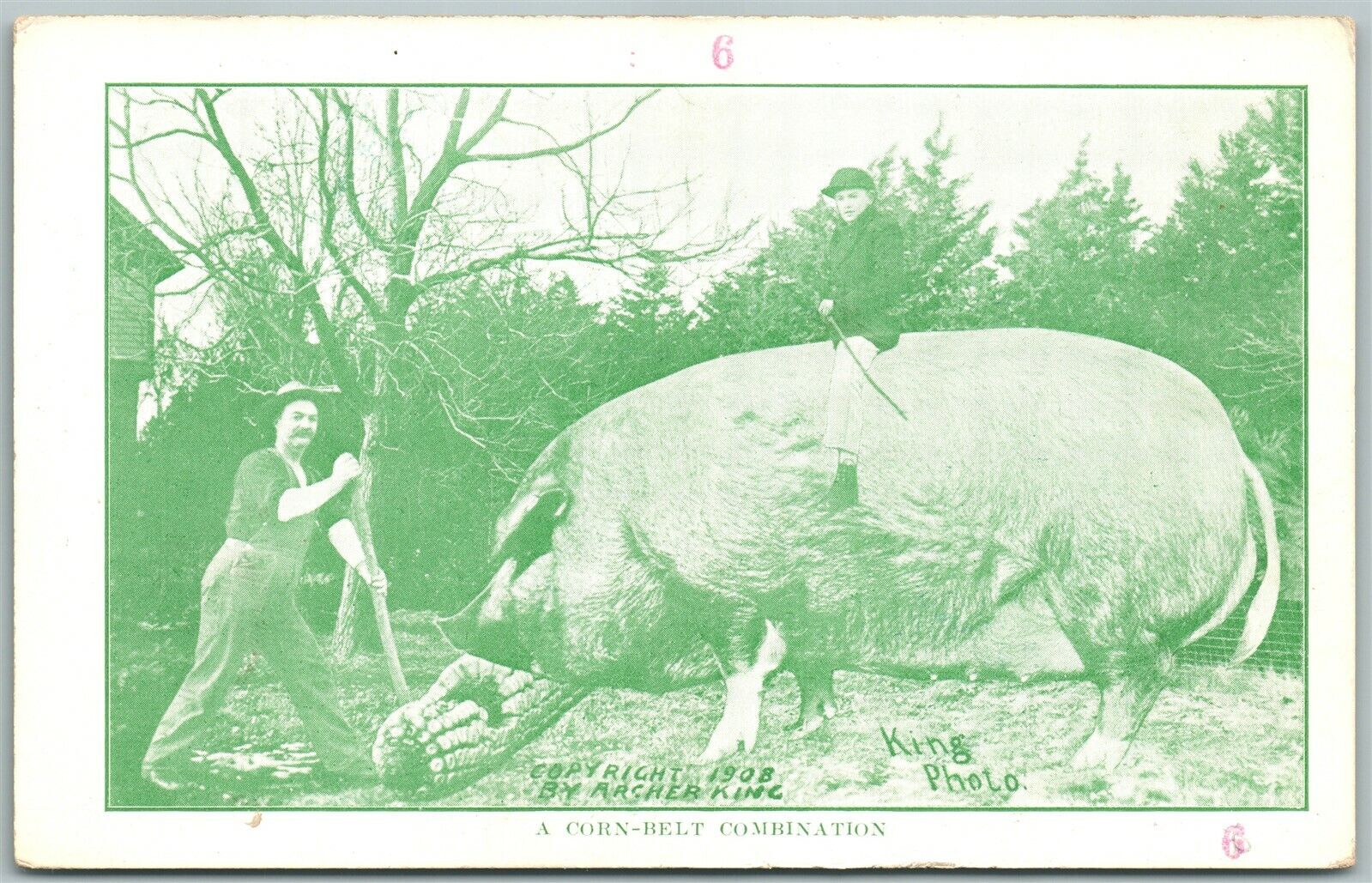EXAGGERATED PIG CORN BELT COMBINATION ANTIQUE POSTCARD