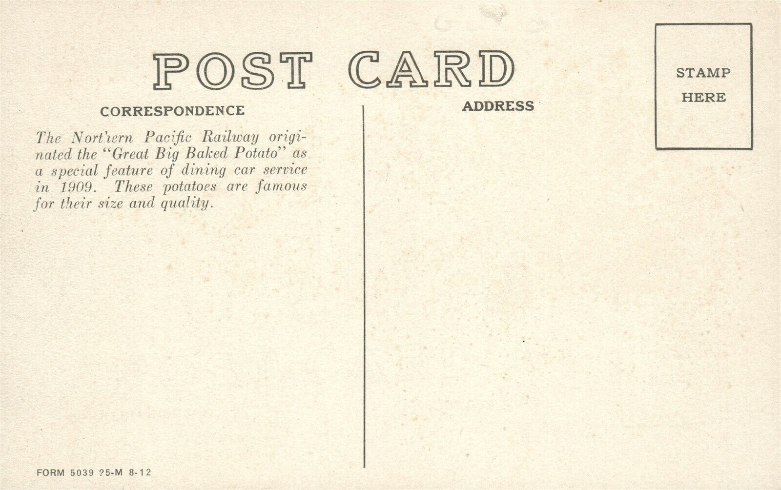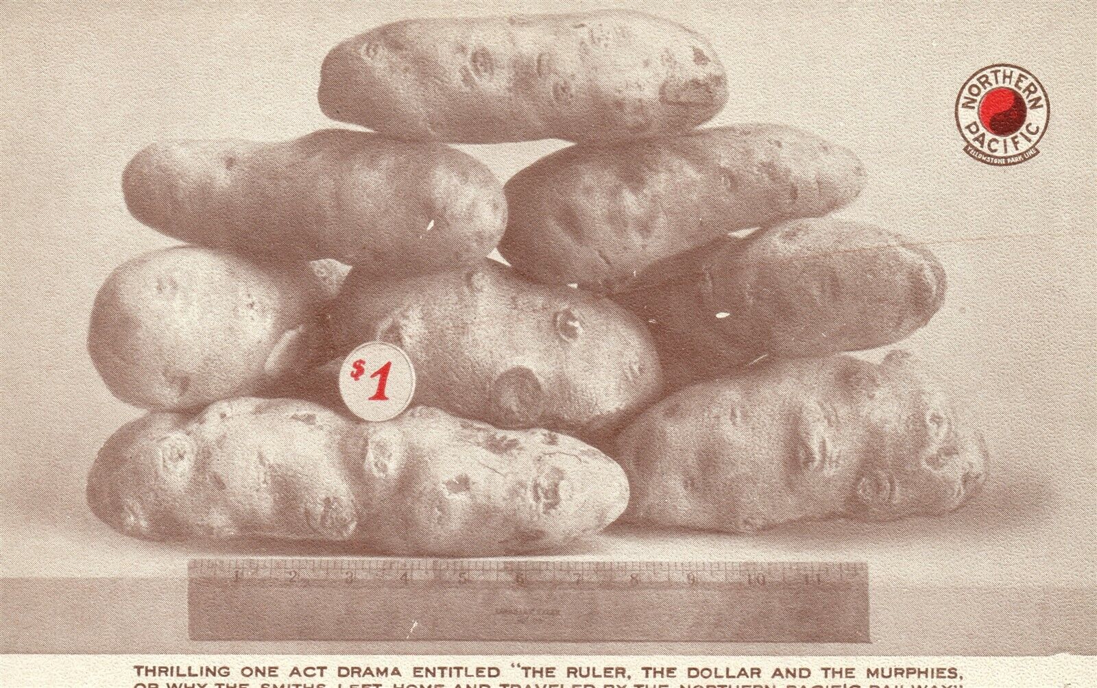 EXAGGERATED POTATO ANTIQUE POSTCARD NORTHERN PACIFIC YELLOWSTONE PARK LINE