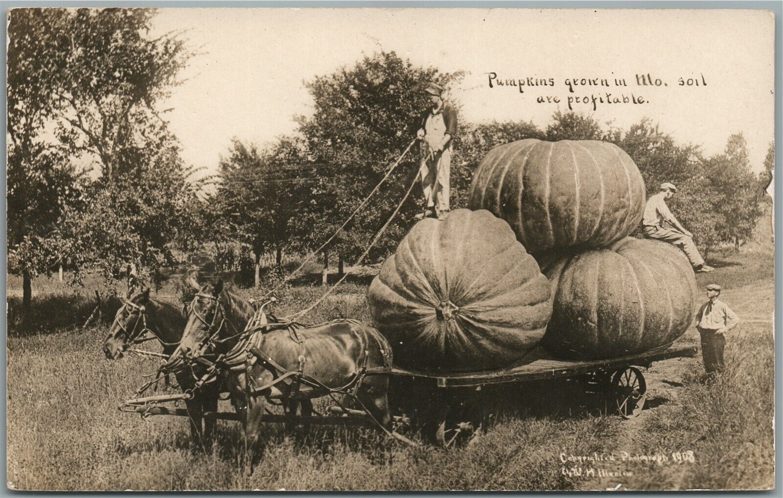 EXAGGERATED PUMPKINS in MISSOURI ANTIQUE REAL PHOTO POSTCARD RPPC