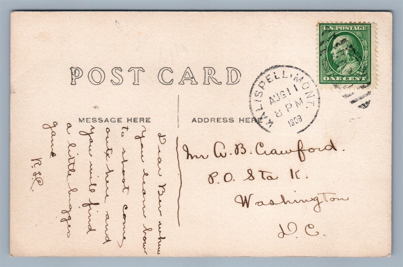 EXAGGERATED RABBIT HUNTING THEME 1909 ANTIQUE REAL PHOTO POSTCARD RPPC