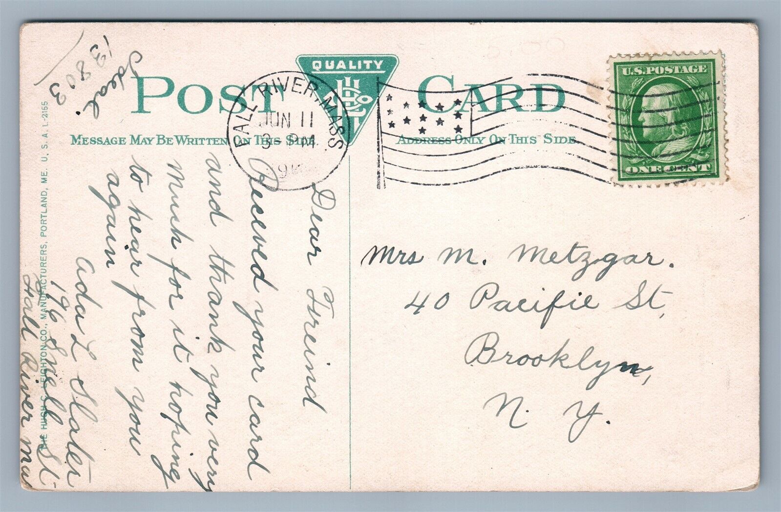 FALL RIVER MA MAIN STREET SOUTH FROM CITY HALL ANTIQUE POSTCARD