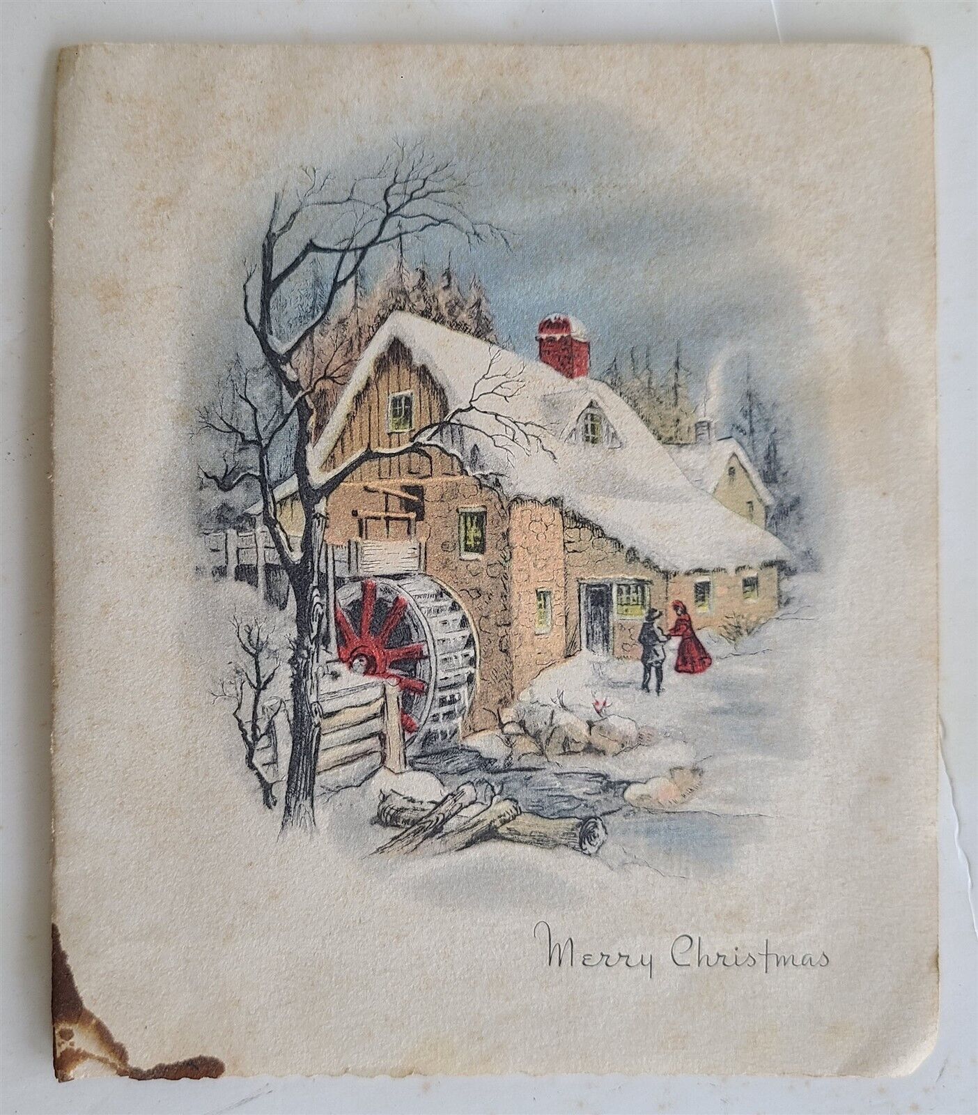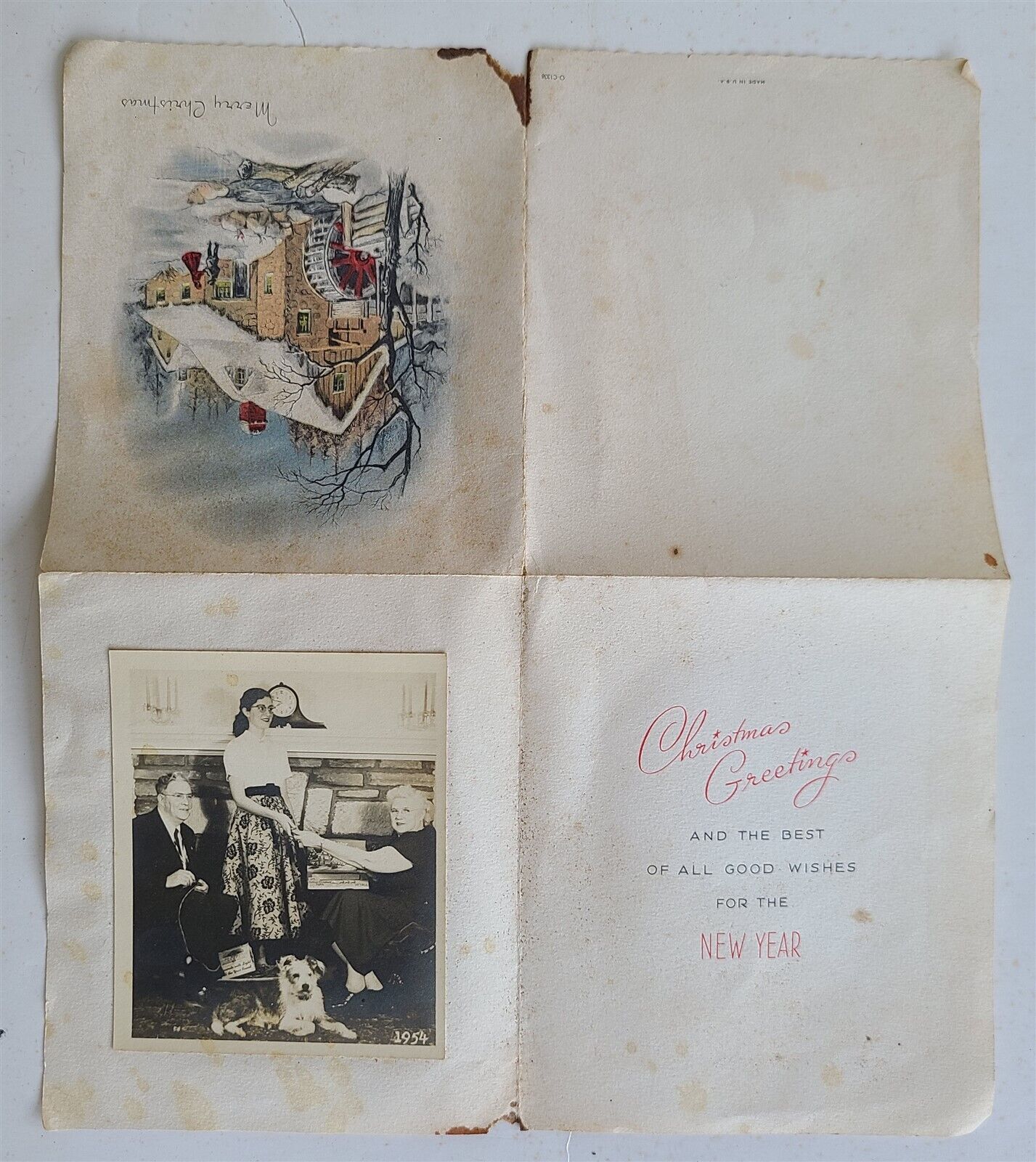 FAMILY w/ DOG MERRY CHRISTMAS VINTAGE REAL PHOTO POSTCARD