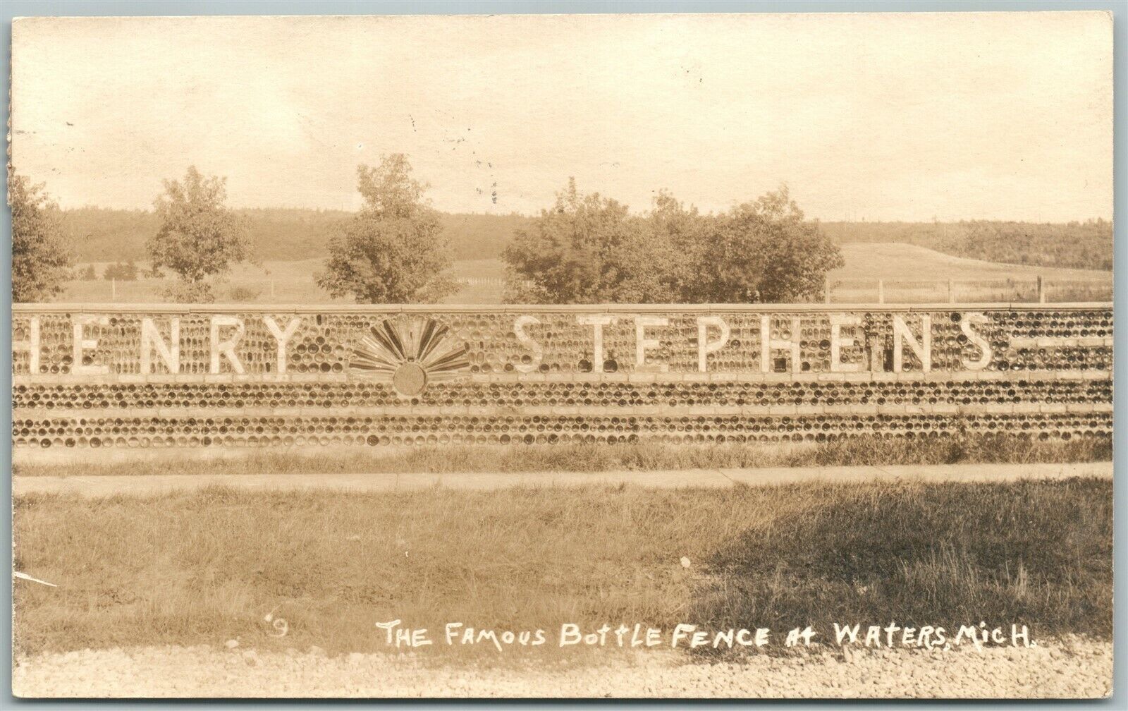 FAMOUS BOTTLE FENCE at WATERS MI 1925 ANTIQUE REAL PHOTO POSTCARD RPPC