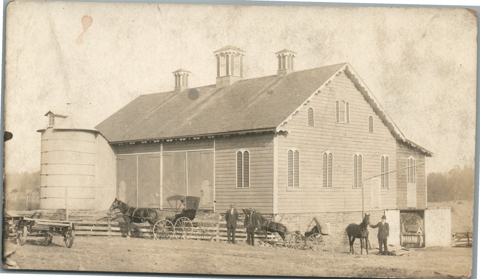 FARM SCENE w/ HORSE DRAWN CARRIAGES ANTIQUE REAL PHOTO POSTCARD RPPC