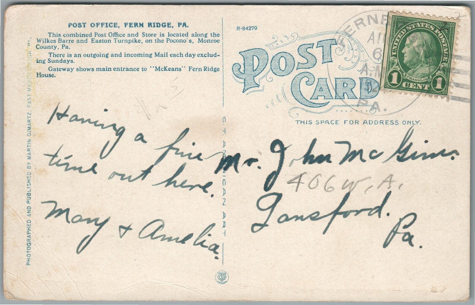 FERN RIDGE PA POST OFFICE ANTIQUE POSTCARD