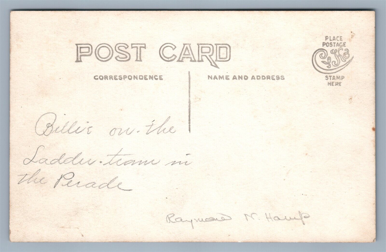 FIREFIGHTING HORSE WAGON w/ LADDER RARE ANTIQUE REAL PHOTO POSTCARD RPPC