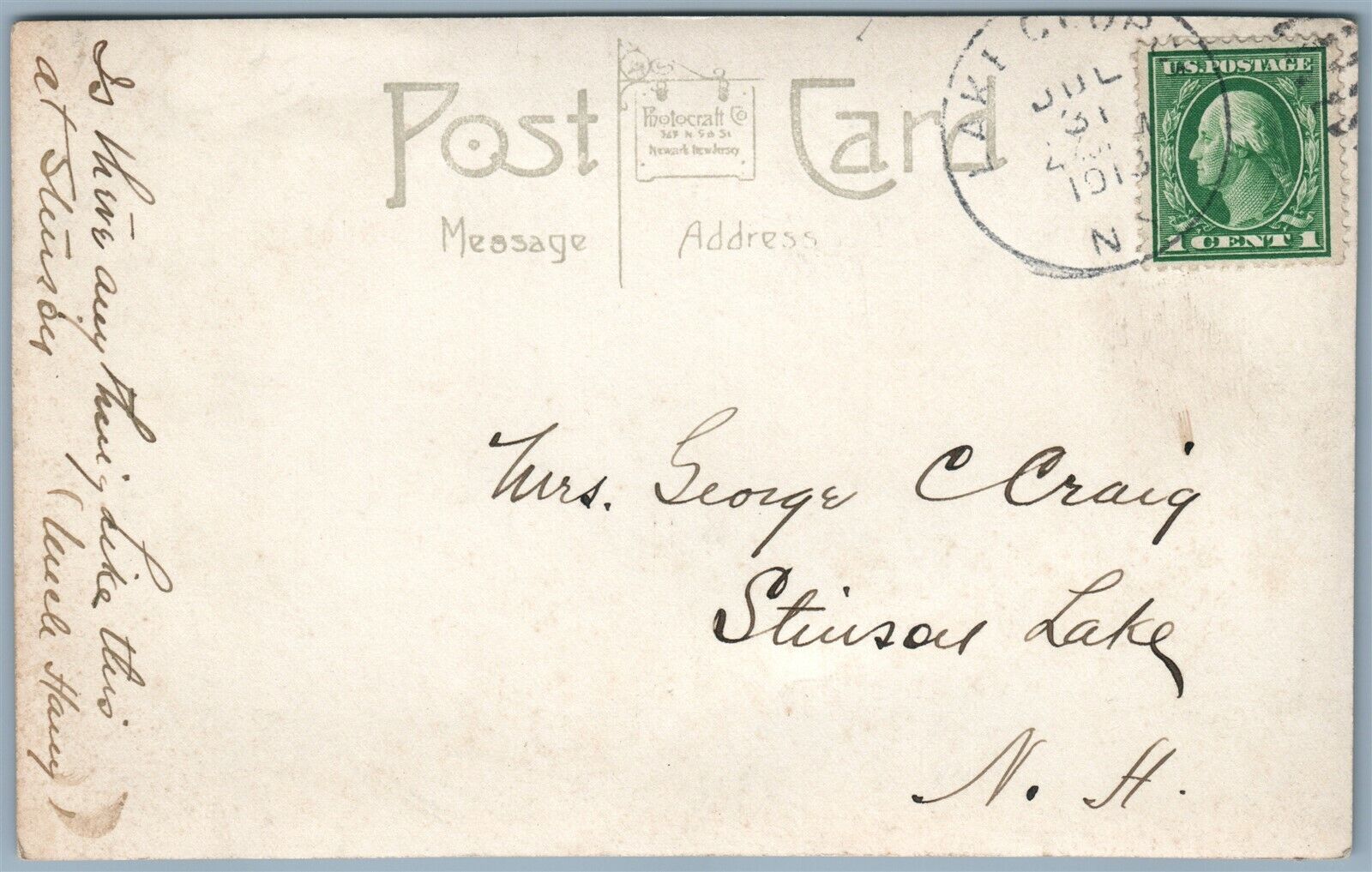 FISHING IS GREAT HERE ANTIQUE 1913 EXAGGERATED REAL PHOTO POSTCARD RPPC