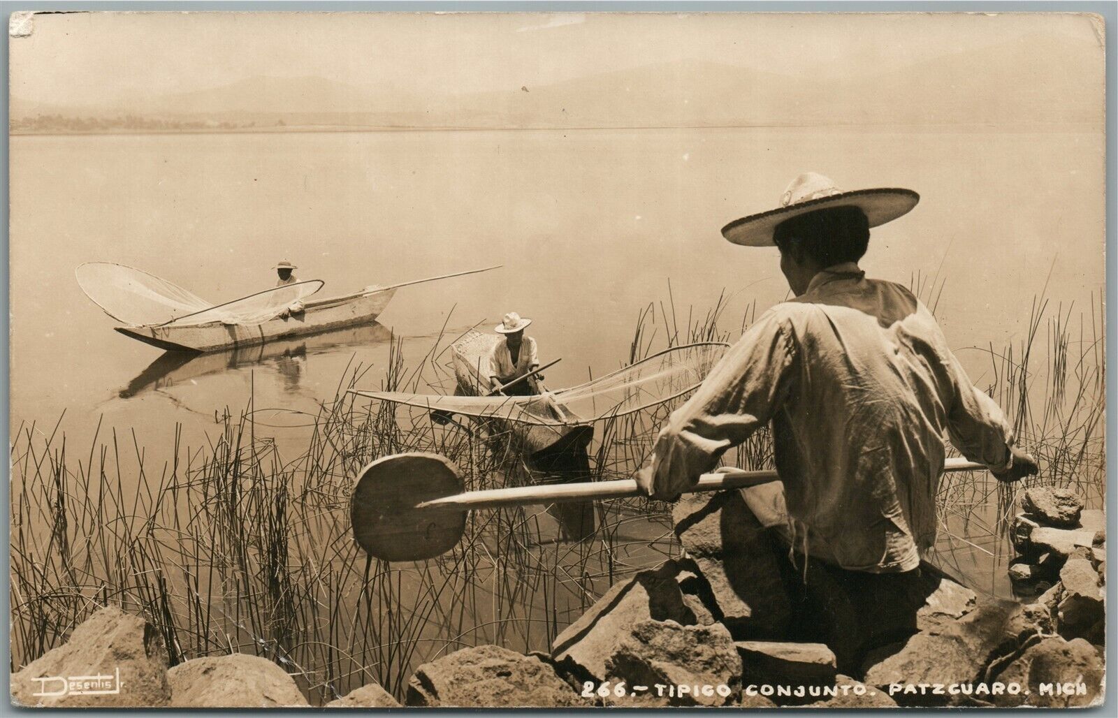 FISHING PATZCUARO MEXICO VINTAGE REAL PHOTO POSTCARD RPPC