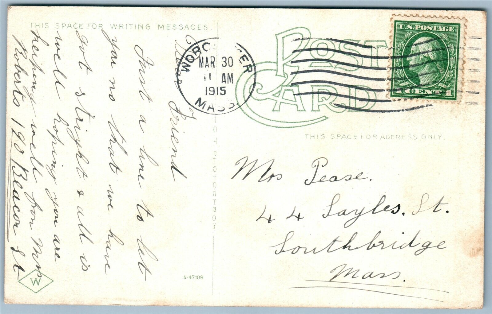 FITCHBURG MA MAIN STREET ANTIQUE POSTCARD