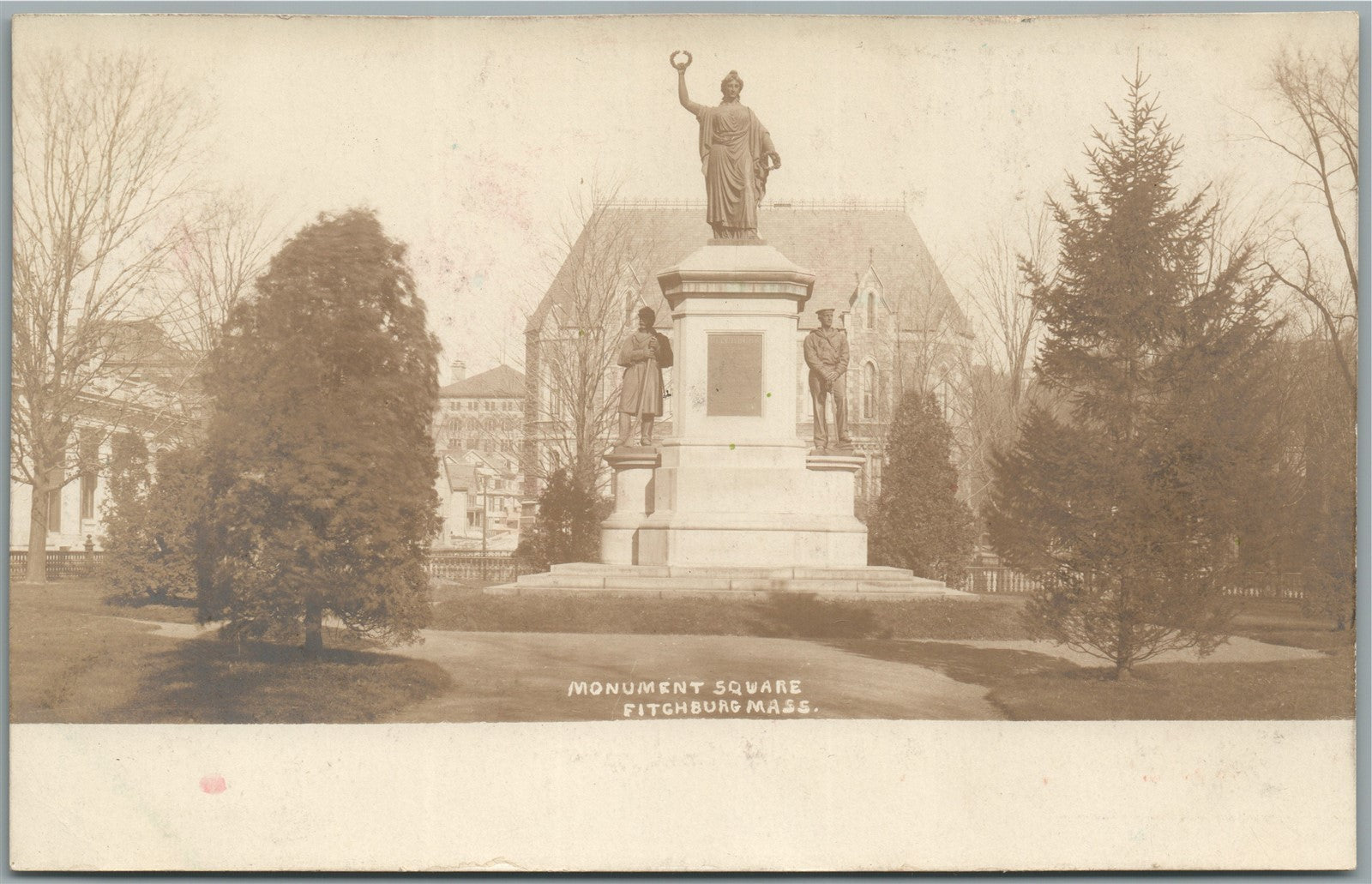 FITCHBURG MA MONUMENT SQUARE ANTIQUE REAL PHOTO POSTCARD RPPC