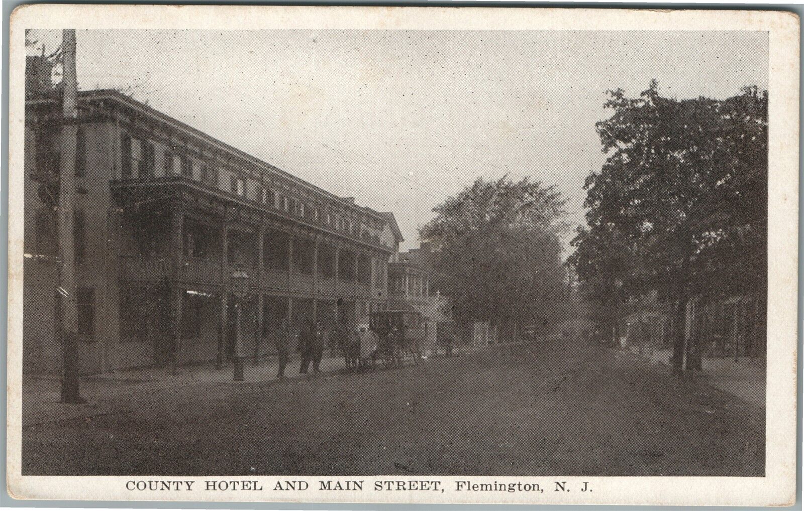 FLEMINGTON NJ COUNTY HOTEL AND MAIN STREET ANTIQUE POSTCARD