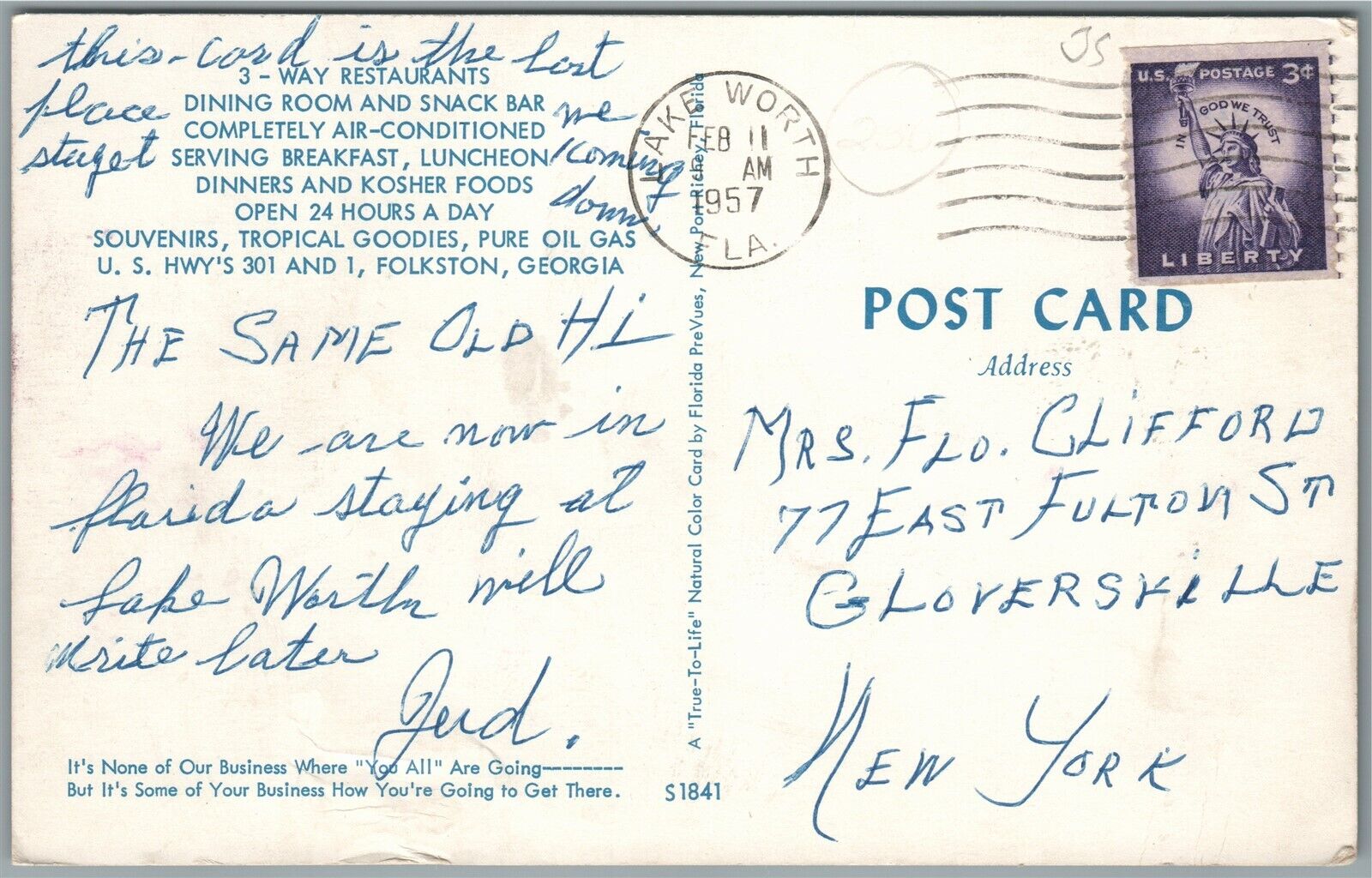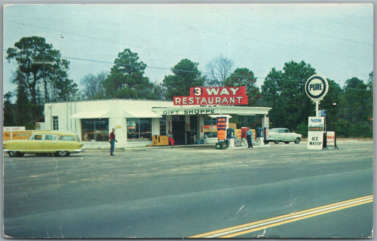 FOLKSTON GA GAS STATION 3-WAY RESTAURANTS VINTAGE POSTCARD