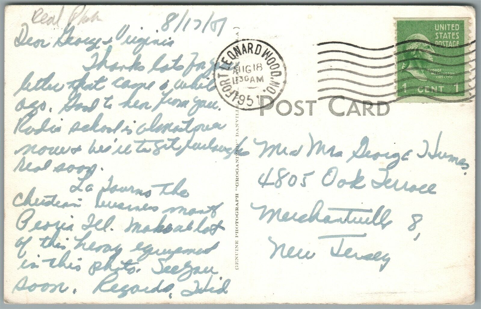 FORT LEONARD WOOD MO HEAVY EQUIPMENT tractors VINTAGE REAL PHOTO POSTCARD RPPC