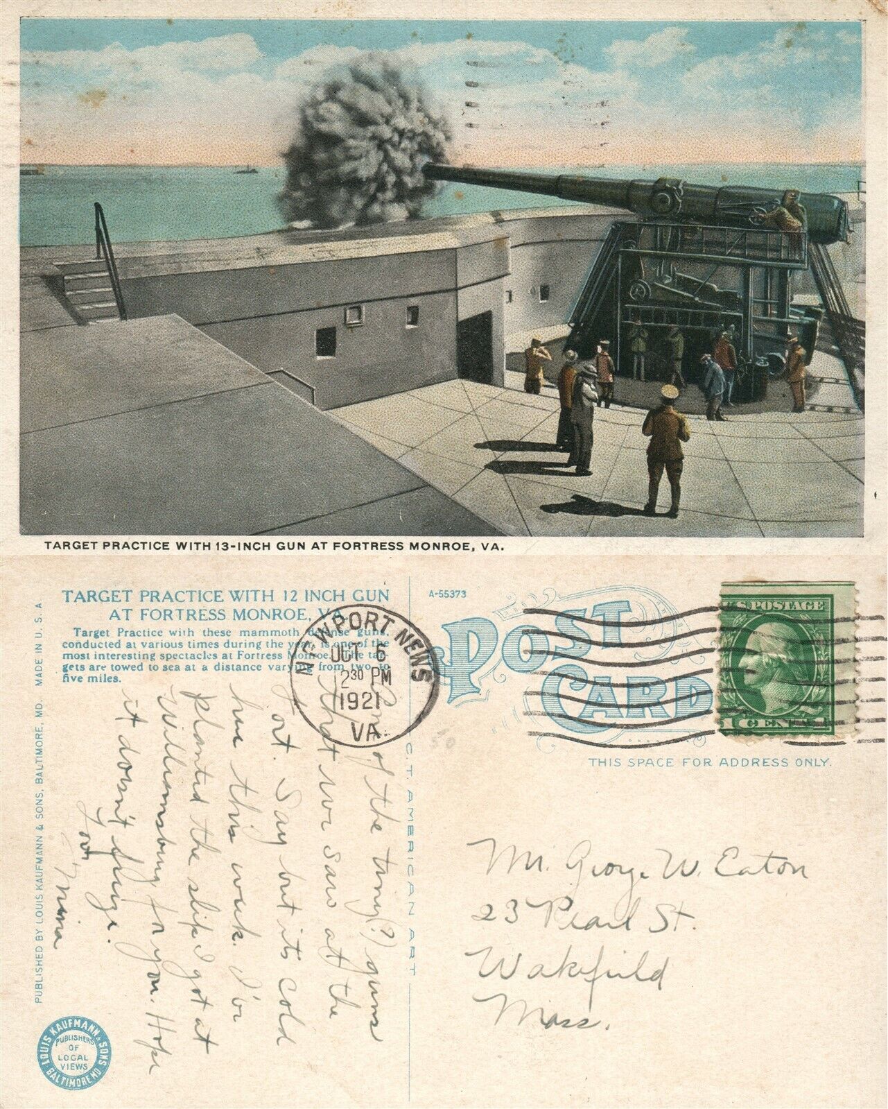 FORTRESS MONROE VA 13" GUN TARGET PRACTICE 1921 ANTIQUE POSTCARD