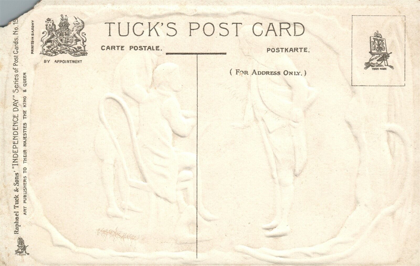 FRAMING OF DECLARATION OF INDEPENDENCE EMBOSSED ANTIQUE PATRIOTIC POSTCARD