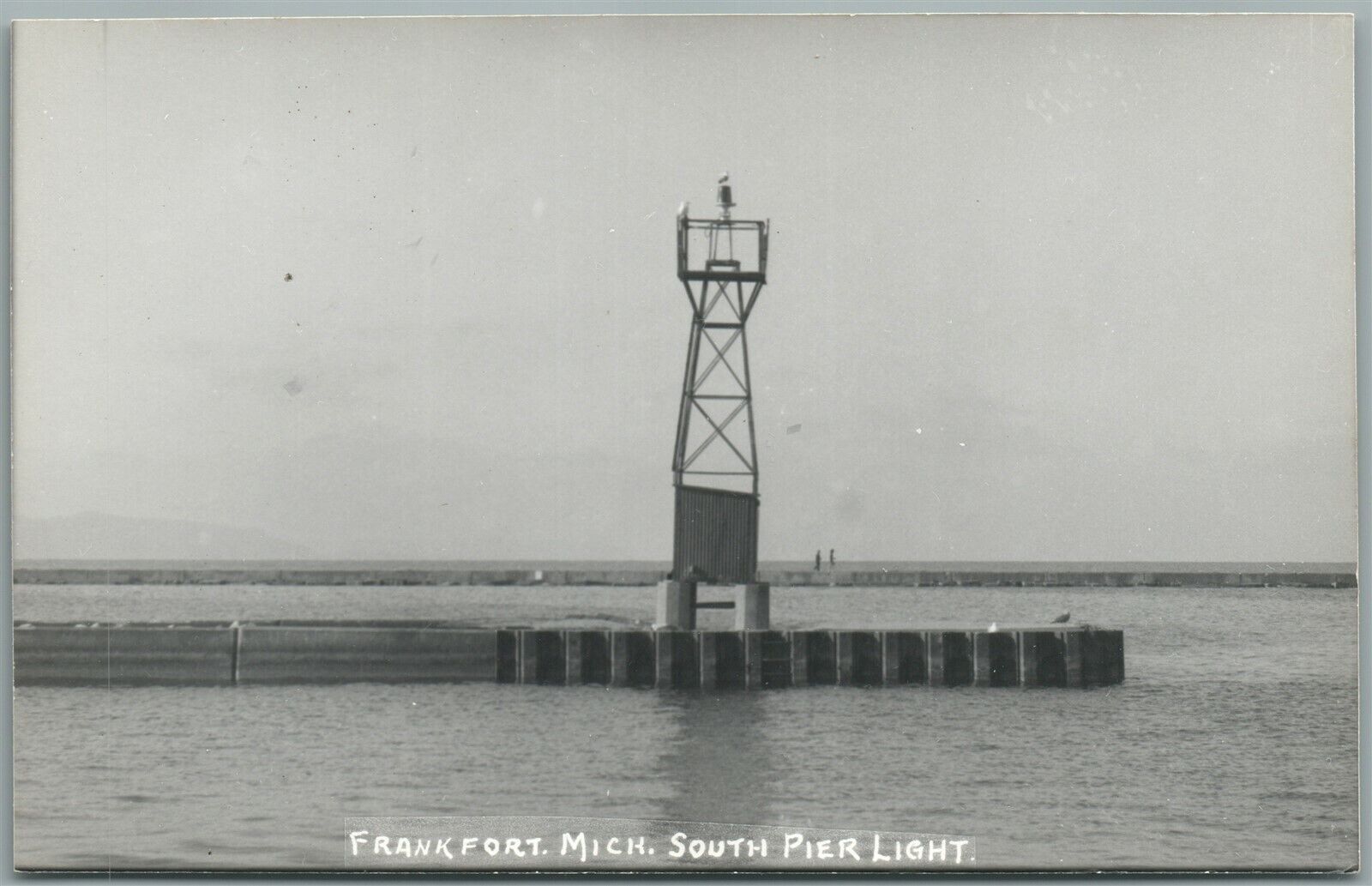 FRANKFORT MI SOUTH PIER LIGHT HOUSE VINTAGE REAL PHOTO POSTCARD RPPC