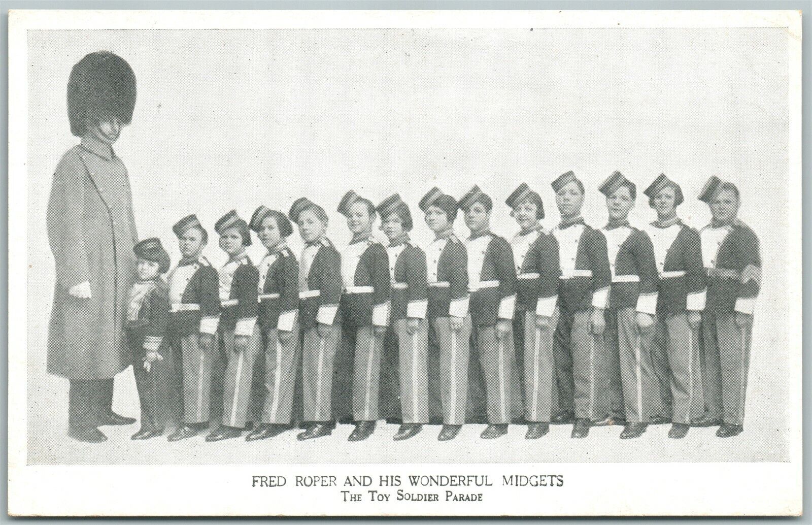 FRED KOPER'S & HIS MIDGETS TOY SOLDIER PARADE ANTIQUE POSTCARD