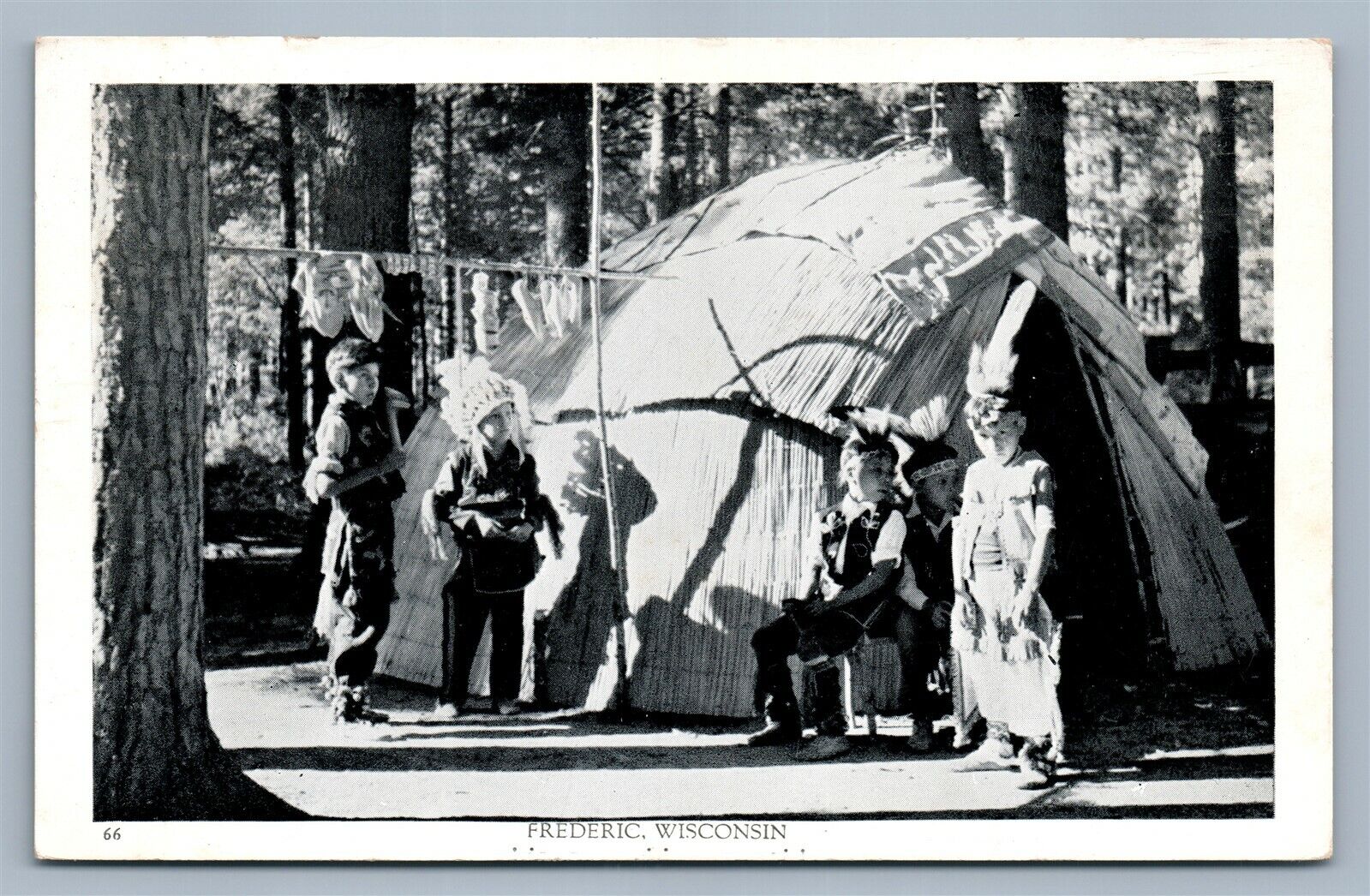 FREDERIC WI AMERICAN INDIAN WIGWAM VINTAGE POSTCARD