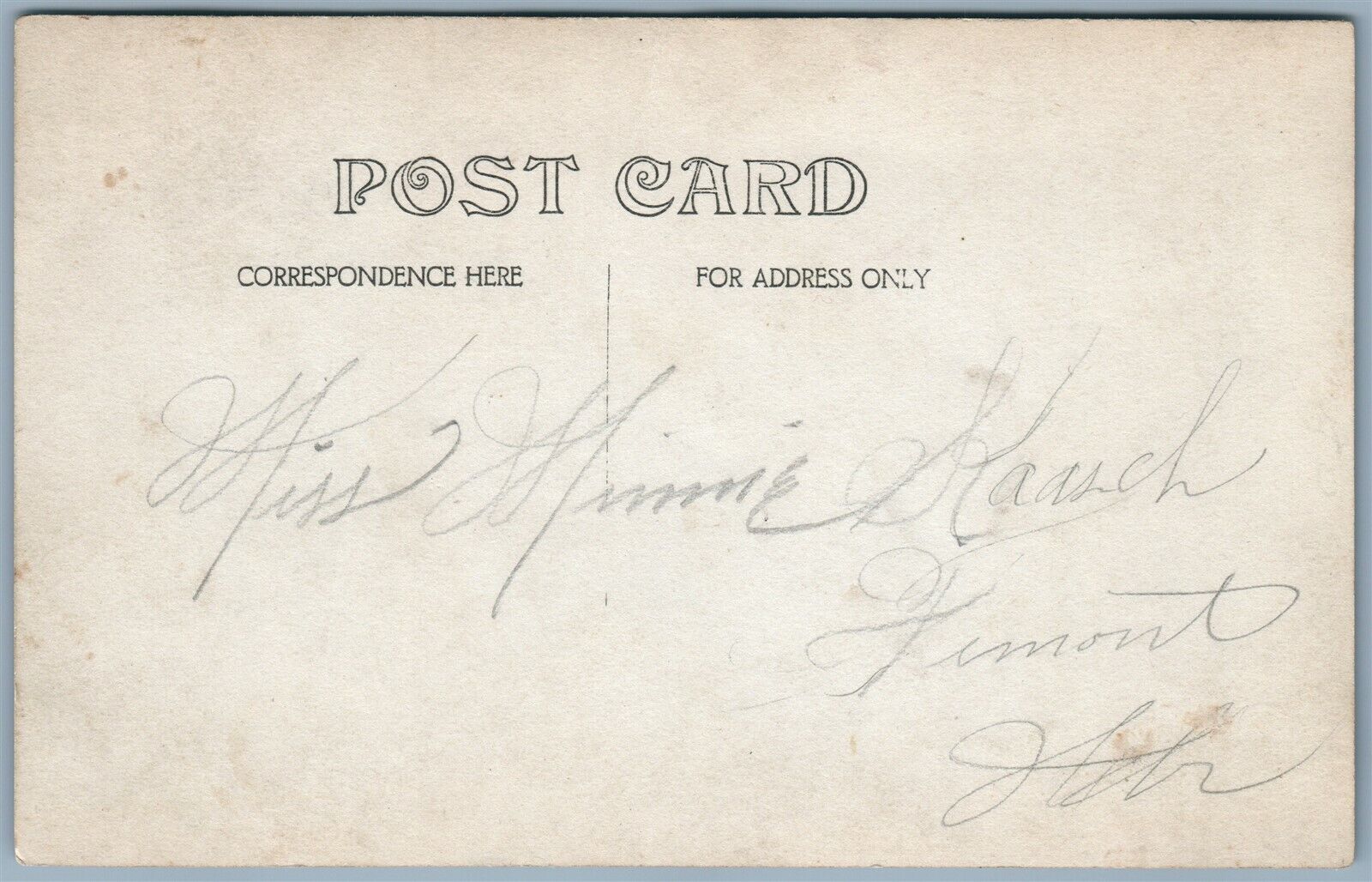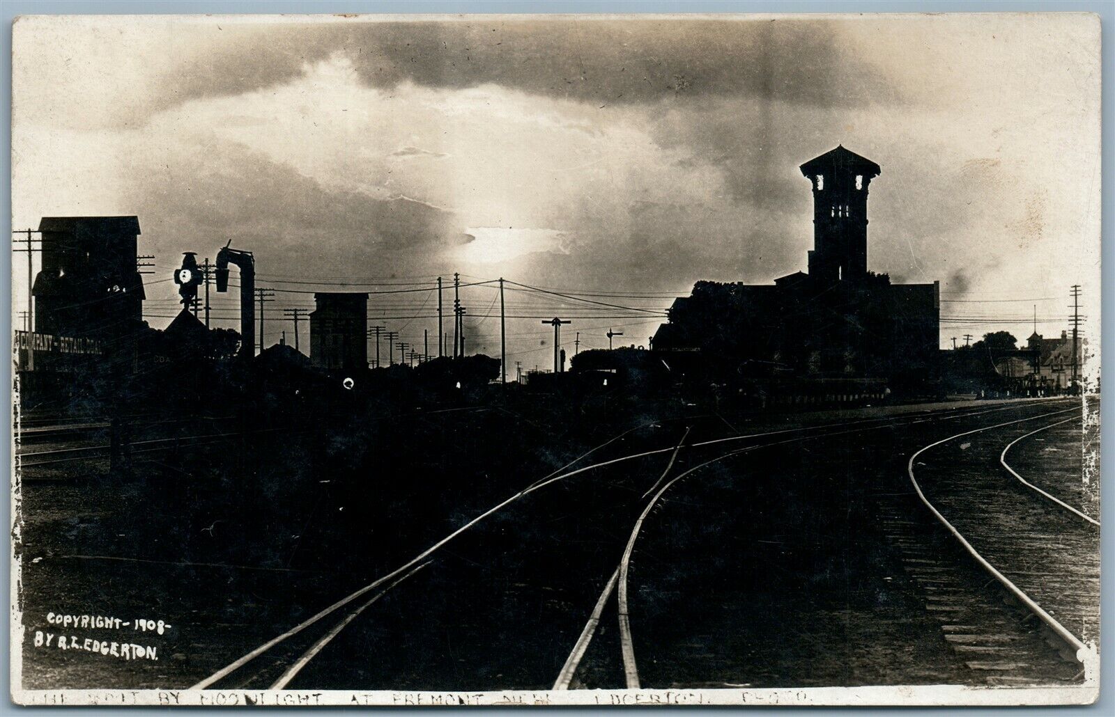 FREMONT NE RAILROAD STATION AT NIGHT ANTIQUE REAL PHOTO POSTCARD RPPC railway