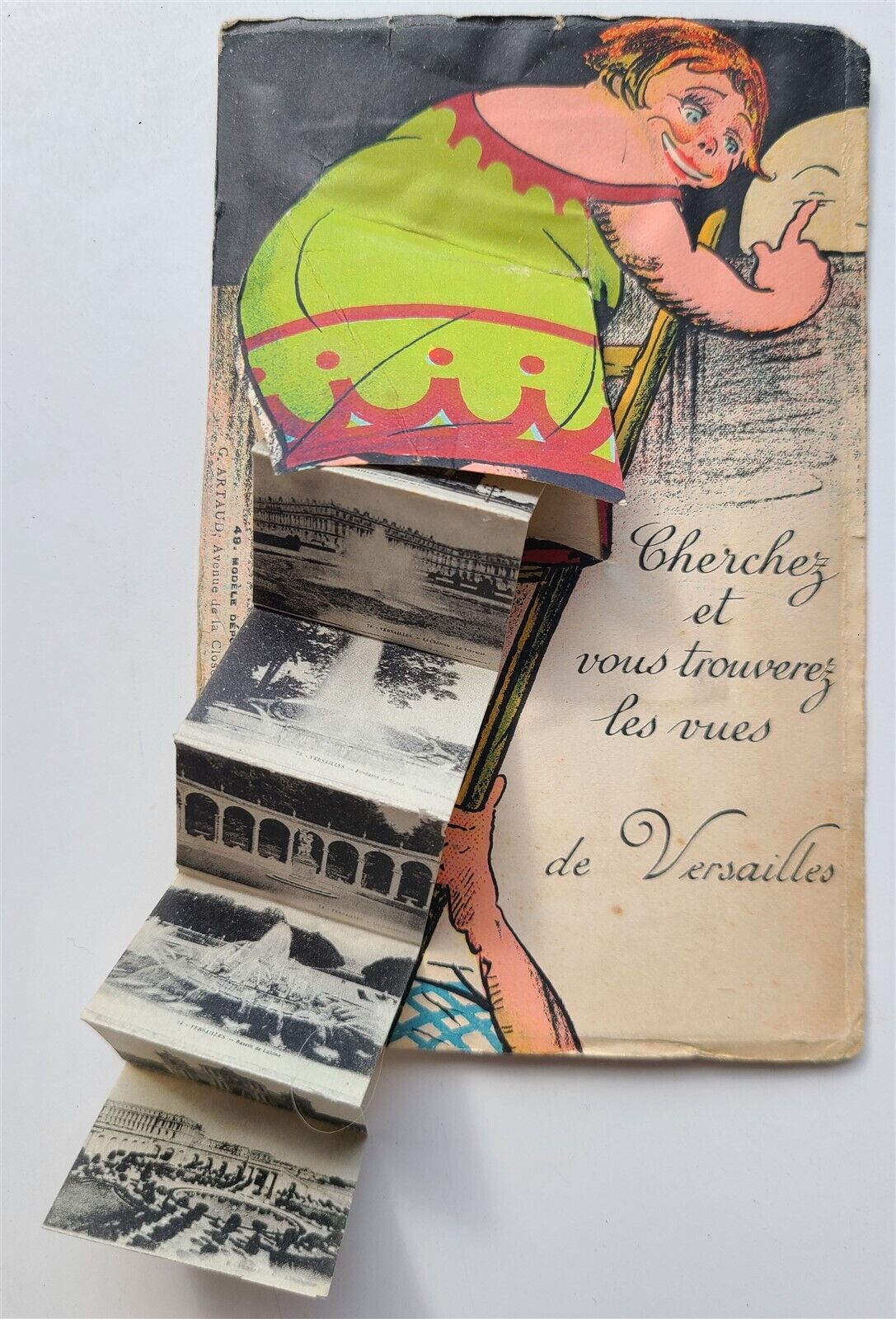 FRENCH ANTIQUE COMIC POSTCARD w/ FOLDING MINIATURE VIEWS of VERSAILLES