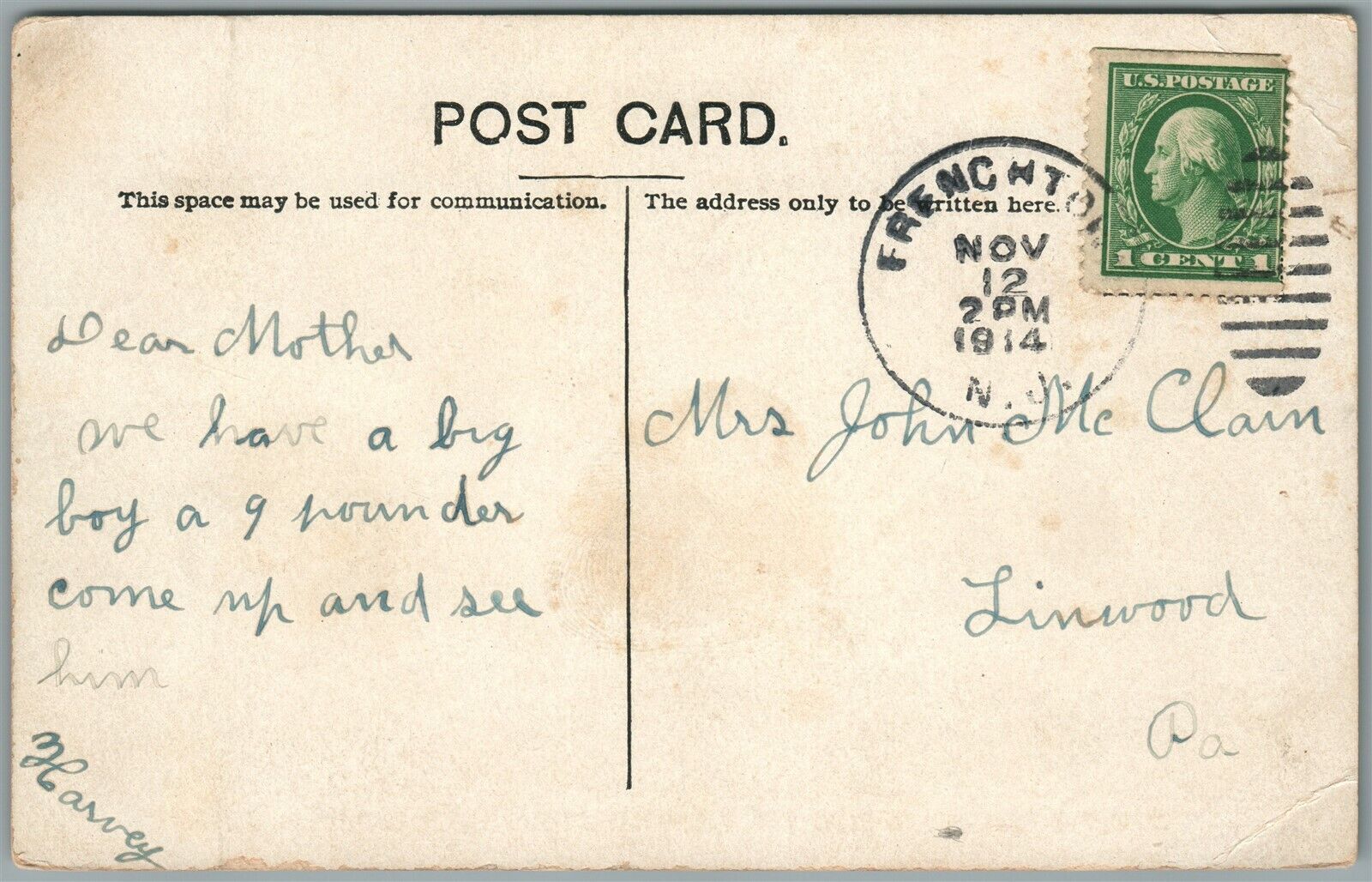 FRENCHTOWN NJ SECOND STREET ANTIQUE POSTCARD
