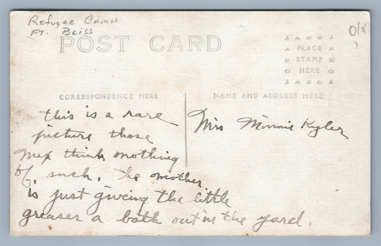 FT.BLISS SCENE AT AMERICAN INDIAN REFUGEE CAMP ANTIQUE REAL PHOTO POSTCARD RPPC