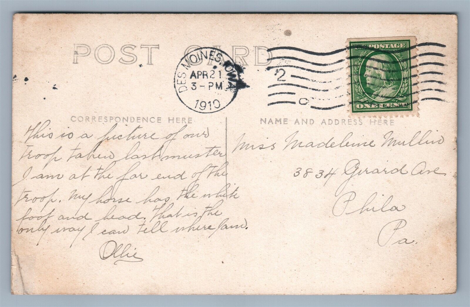 FT. DES MOINES IA CAVALRY TROOPS PARADE 1910 ANTIQUE REAL PHOTO POSTCARD RPPC