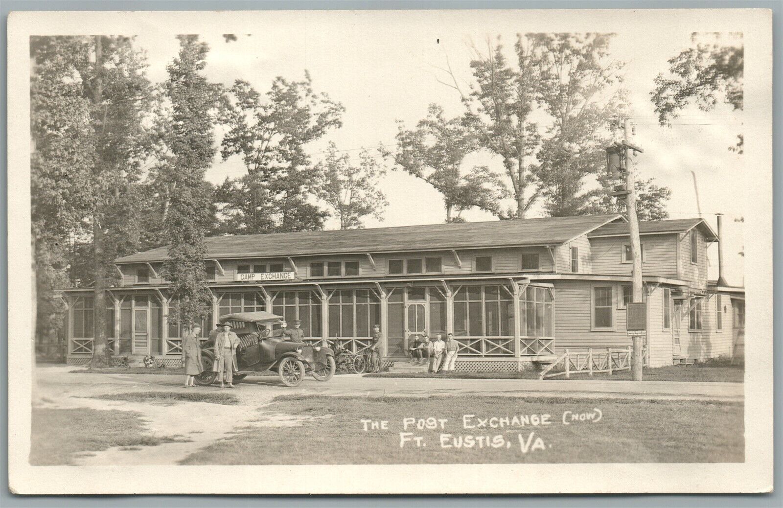 FT. EUSTIS CAMP VA POST EXCHANGE ANTIQUE REAL PHOTO POSTCARD RPPC w/ AUTOMOBILE